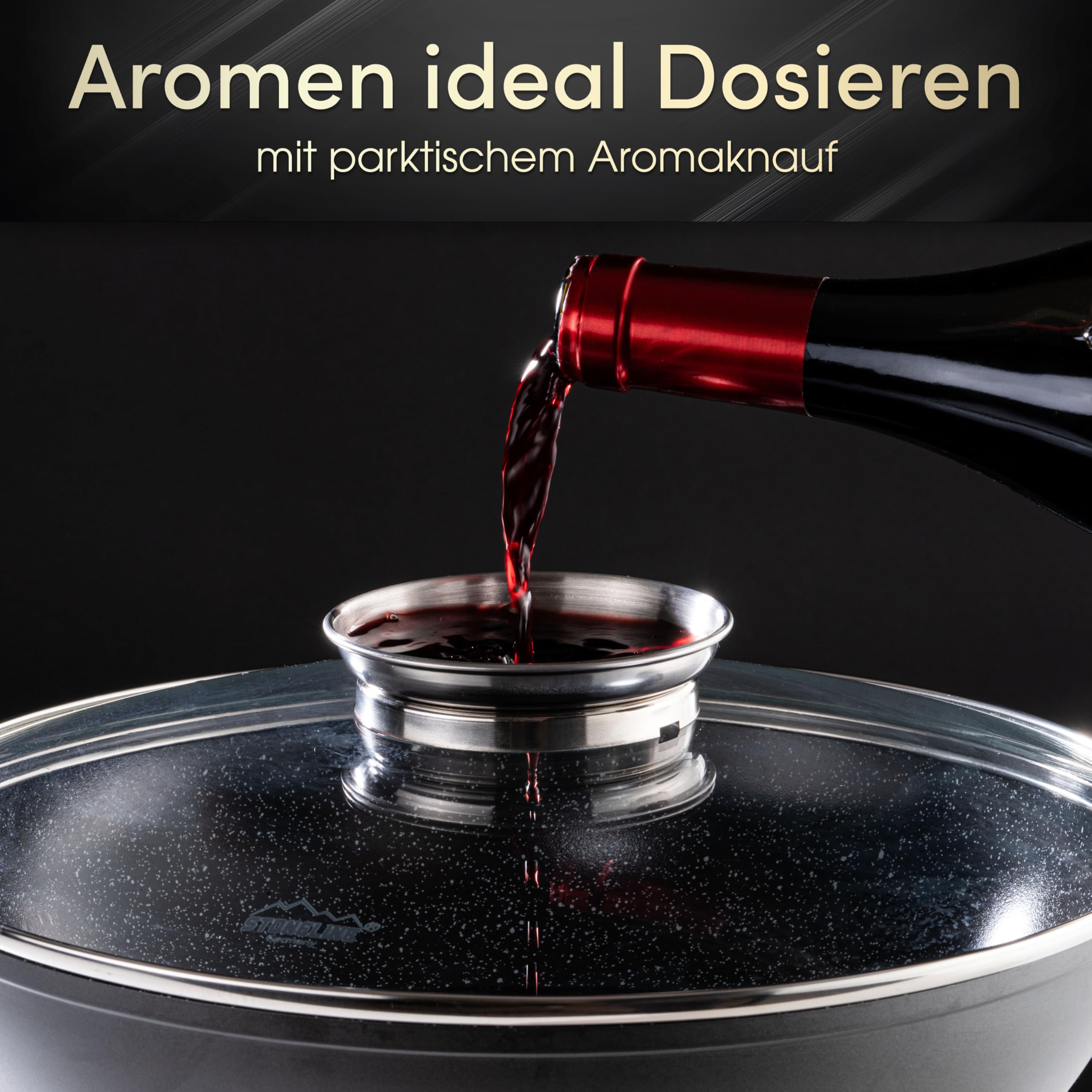STONELINE - Das Original!Nun auch in der KeramikausführungDiese Servierpfanne ist ideal für die Zubereitung von Gerichten, die Sie ganz einfach vom Herd direkt auf den Tisch servieren können!Sie ersetzt die herkömmliche Servierschüssel: So kommen Ihre Gerichte immer heiss auf den Tisch und bleiben länger heiss, da die Servierpfanne hervorragend die Wärme speichert.Noch dazu sehen Ihre Speisen in der Pfanne dekorativ und appetitlich aus.Wenn Sie dabei noch Wert auf eine leichte, fettarme Küche legen, ist dieses Kochgeschirr genau das Richtige für Sie!Ein ganz besonderer Vorteil dieser Servierpfanne ist der Glasdeckel mit Aromaknopf und Dampföffnung. Dieser erlaubt es, Flüssigkeiten wie Wein, Brühe oder Wasser tröpfchenweise zuzugeben, ohne den Deckel abnehmen zu müssen - das ganze Aroma bleibt deshalb in der Pfanne!1 Servierpfanne, ø ca. 28 cm, Höhe: ca. 6,5 cm, ca. 3,5 l1 Aroma-Glasdeckel, ø ca. 28 cm Die wichtigsten Vorteile des STONELINE CERAMIC Kochgeschirrs auf einen Blick: e Keramikbeschichtung - PFOA und PTFE frei Kratzfeste STONELINE CERAMIC -Keramikbeschichtung Fettarmes Kochen und Braten Nährstoff- und vitaminschonend Für eine optimales Bratergebnis und kross gebratenes Fleisch Fantastische Antihaftqualität: Kein Anbrennen und Ankleben Alles perlt ab Einfache Reinigung Extrem hitzebeständig sogar zum Flambieren geeignet Backofenfest bis 180 °C Für alle Herdarten geeignet, auch Induktion Extra starker, verziehfreier Wärmeleitboden