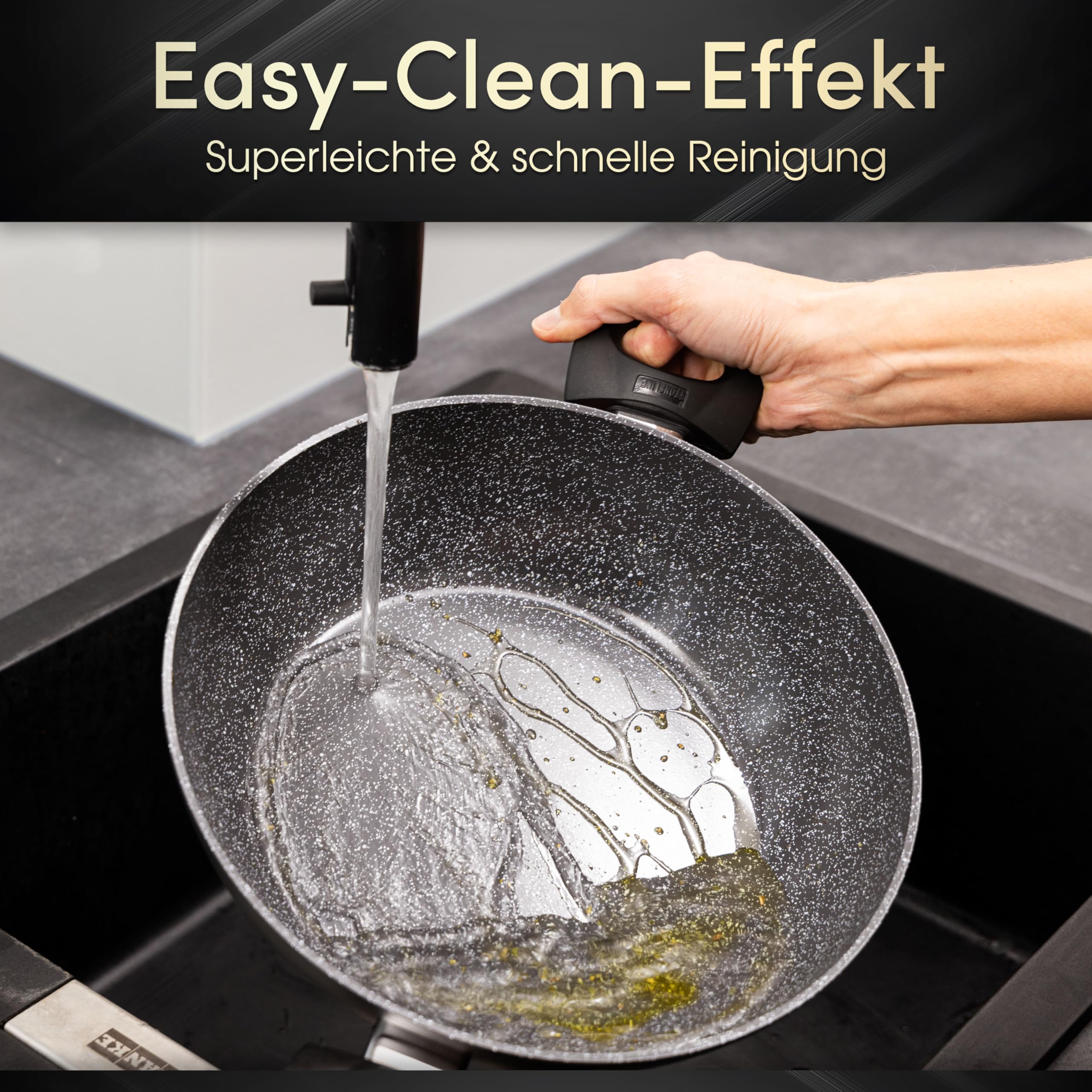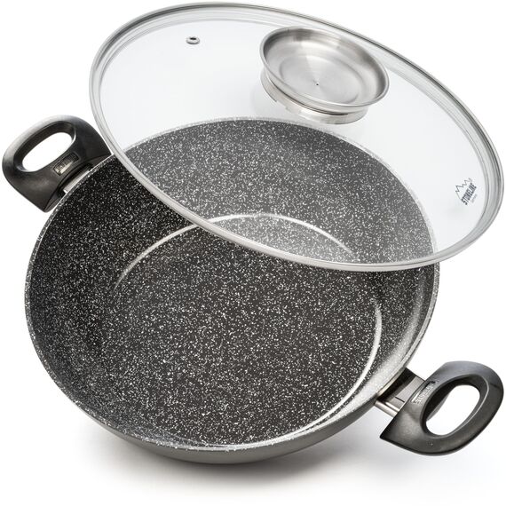 STONELINE Ceramic Servierpfanne 28 cm Hoher Rand Keramikpfanne Induktion Antihaft Pfanne mit Deckel, Keramikbeschichtung mit echten Steinpartikeln, PFAS frei, Für alle Herdarten, Backofengeeignet