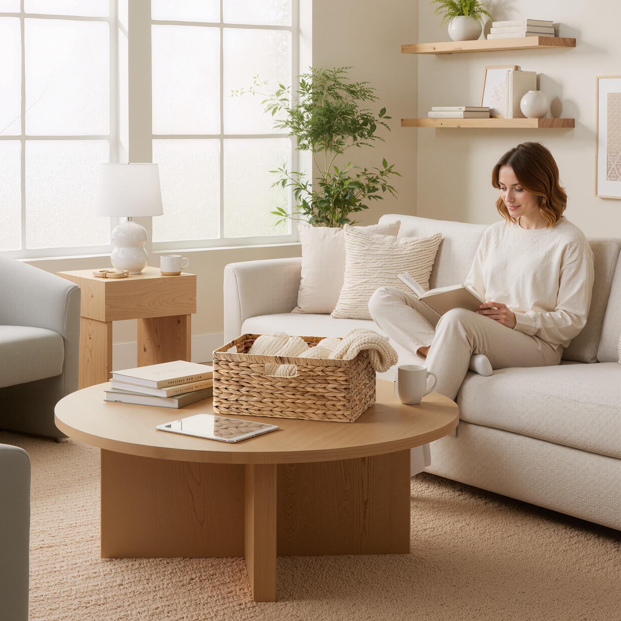 StorageWorks extra grosse Aufbewahrungskörbe aus Wasserhyazinthe, moderner Aufbewahrungsbox geflochten, platzsparende Körbe für Regal, Wasserhyazinthenkörbe geflochten mit Griffen, 1 Stück