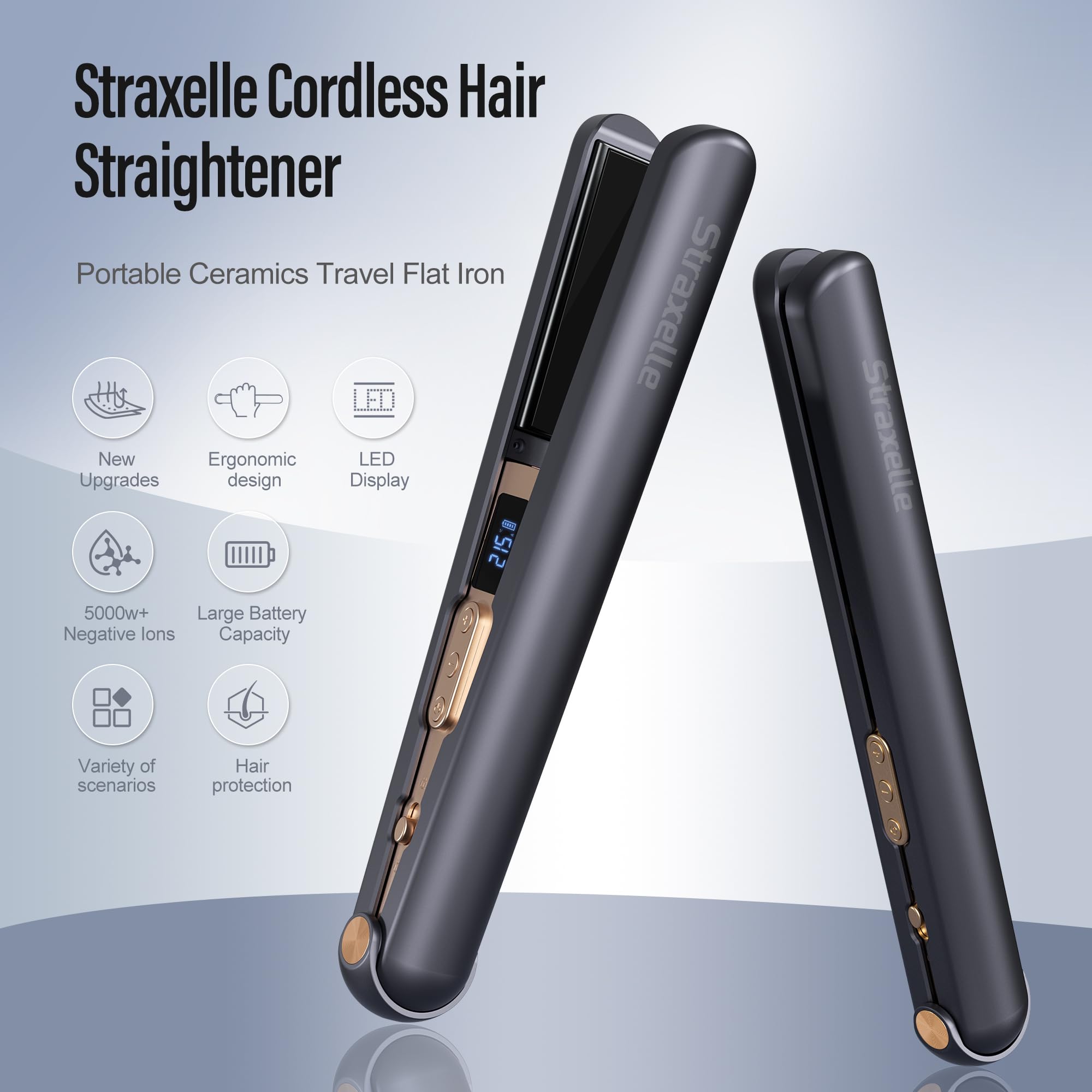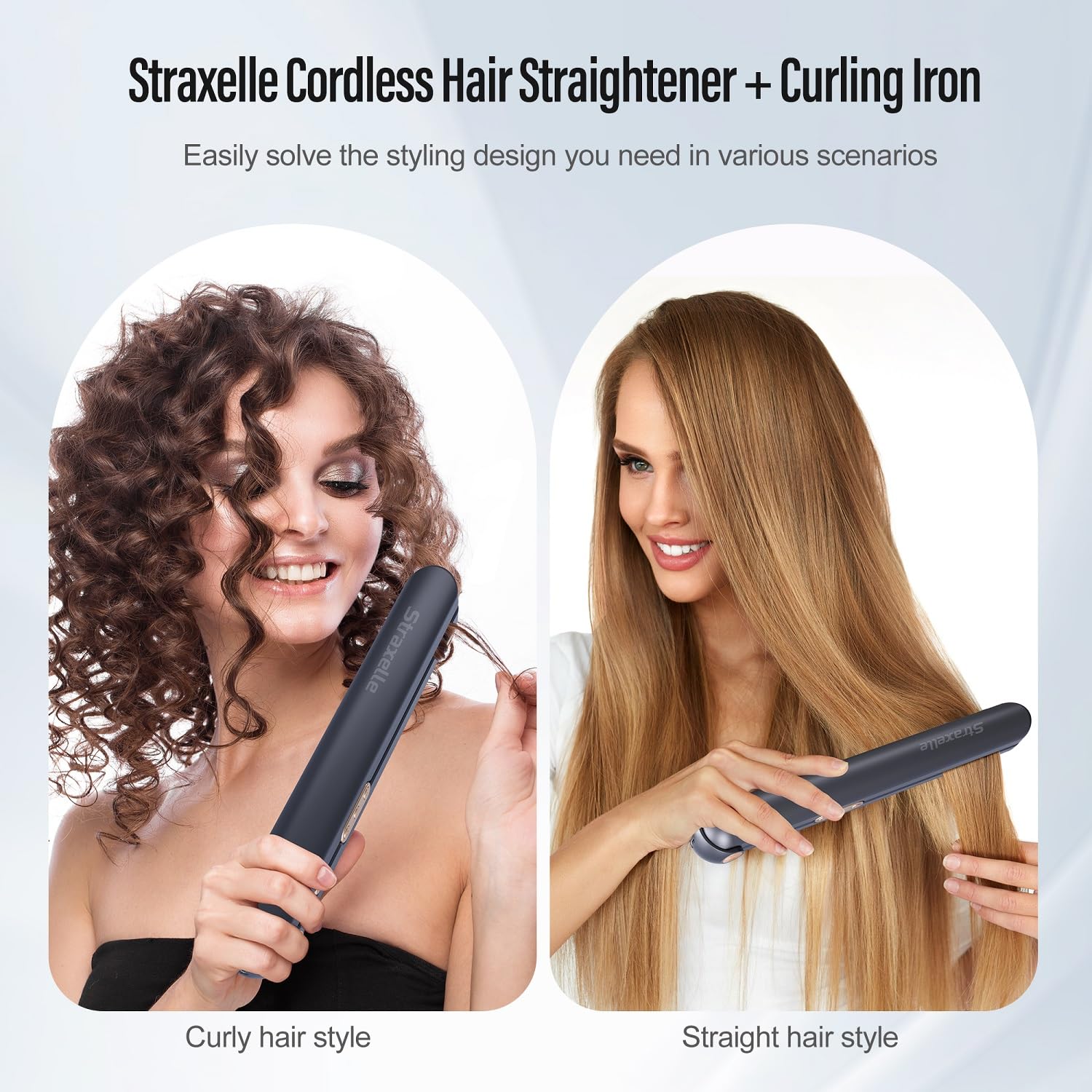 Straxelle 2 in 1 Glätteisen Kabellos und Lockenstab,Haarglätter mit 10000mAh Tragbares Reiseglätteisen 3 Einstellbare Temperaturen 175°C-215°C hair straightener mit LED-Anzeige für alle Haartypen