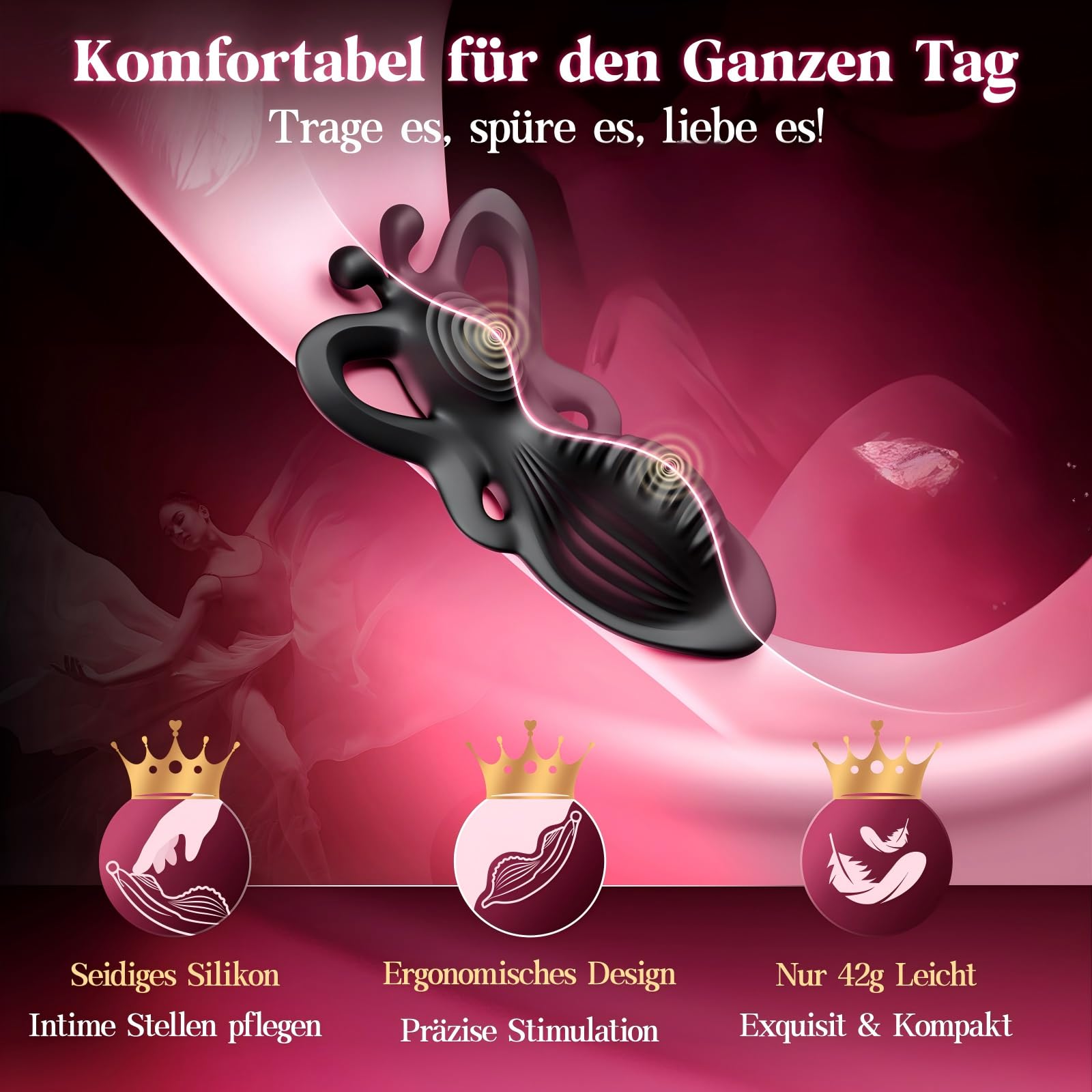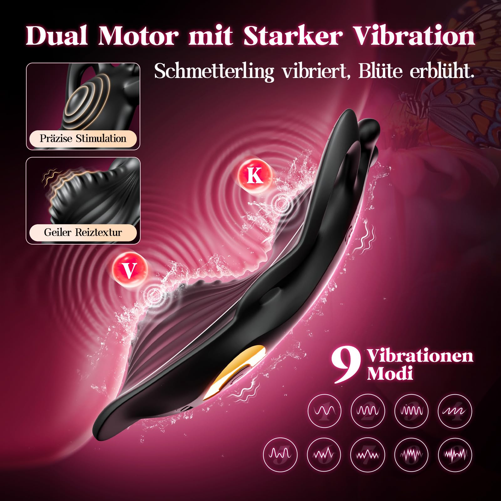 Die filigranen, durchbrochenen Flügel des Schmetterlings, inspiriert von der Eleganz und Durchbrochenheit von schwarzer Spitze. Jedes Detail des Sex spielzeug für die frau ist sorgfältig gestaltet, Sorgt für ein angenehmes Tragegefühl. Vivace Butterfly Klitorisstimulator: Dieses Butterfly Vibratorensets für Frauen Klitoris ist wissenschaftlich entwickelt und passt sich genau an Körper an. Eine durchdachte Struktur in Kombination mit den Vibrationsmodi sorgt für ein angenehmeres Nutzungserlebnis. Starker Dualmotor & 9 Vibrationsmodi: Dieser Vibratorensets für Frauen verfügt über eine Dualmotor-Struktur und bietet 9 einstellbare Vibrationsmodi für vielfältige Rhythmusoptionen. Der schmetterlingsförmige Vibrationskopf mit ringförmigen Kontaktpunkten sorgt für eine gezieltere Vibrationsabgabe. Im Vergleich zur ersten Generation wurde der erhöhte Teil des Gehäuses vergrössert, wodurch der Vibrationsbereich erweitert und die Vibrationsverteilung gleichmässiger wird. Hochwertiges Silikon & bequemer Stringriemen: Dieser tragbare Sex spielzeug für die paare Vibrator hat nicht nur einen samtenen Touch, sondern auch eine ergonomische Form. Der elastischer Stringriemen ist weich und luftdurchlässig, sodass sie auch bei längerer Tragzeit komfortabel sind. Egal wie leidenschaftlich Sie sich winden, der sex spielzeug für die frau extrem wird nicht verrutschen. Die elastische Bandgestaltung passt sich fast allen Körpergrössen an und einfacher und bequemer zu tragen. (Taille: 24 - 36 Zoll, Hüfte: 34 - 46 Zoll). APP-Fernsteuerung & Nutzung in verschiedenen Umgebungen:Über die App können Sie dieses Gerät aus der Ferne steuern und die komfortable Bedienung in verschiedenen Situationen erleben. Der App ist ein „Soundmodus“ integriert, der die Vibrationsfrequenz automatisch an die Umgebungsgeräusche anpasst und so unterschiedliche Nutzungsmöglichkeiten bietet. Selbst über grössere Entfernungen kann das Gerät über die App ferngesteuert werden. Die beiliegende Fernbedienung ermöglicht eine stabile Steuerung innerhalb eines Bereichs von ca. 10 Metern. Wasserdicht & Vielseitig: Perfekt für Bad und Dusche. Das Sexspielzeuge für paare sex ist 100% wasserdicht und erfüllt Ihre Erwartungen in verschiedenen Wasserumgebungen. Besondere Anwendung: Dank des filigranen, durchbrochenen Schmetterlingsflügeldesigns kann das Gerät auch als kleines Fingervibrator verwendet werden. 100% Neutrale Verpackung & Qualitativ hochwertige Service: Der elegante schwarz-butterfly Mini vibrators Sex spielzeug für die Frau ist eine wertvolle Ergänzung der Schlafzimmerkollektion. Sex spielzeug für die paare kommt in einer klassischen vollständig schwarzen Verpackung, auf der keine sensiblen Informationen zu finden sind, um Ihren Datenschutz zu gewährleisten. Darüber hinaus verfügt unser mini vibrator auch über spezielle Aufbewahrungstaschen für Ihre Aufbewahrung. Wenn Sie Fragen oder Probleme haben, zögern Sie nicht, sich an uns zu wenden. Unser Team wird so schnell wie möglich helfen, das Problem zu lösen.