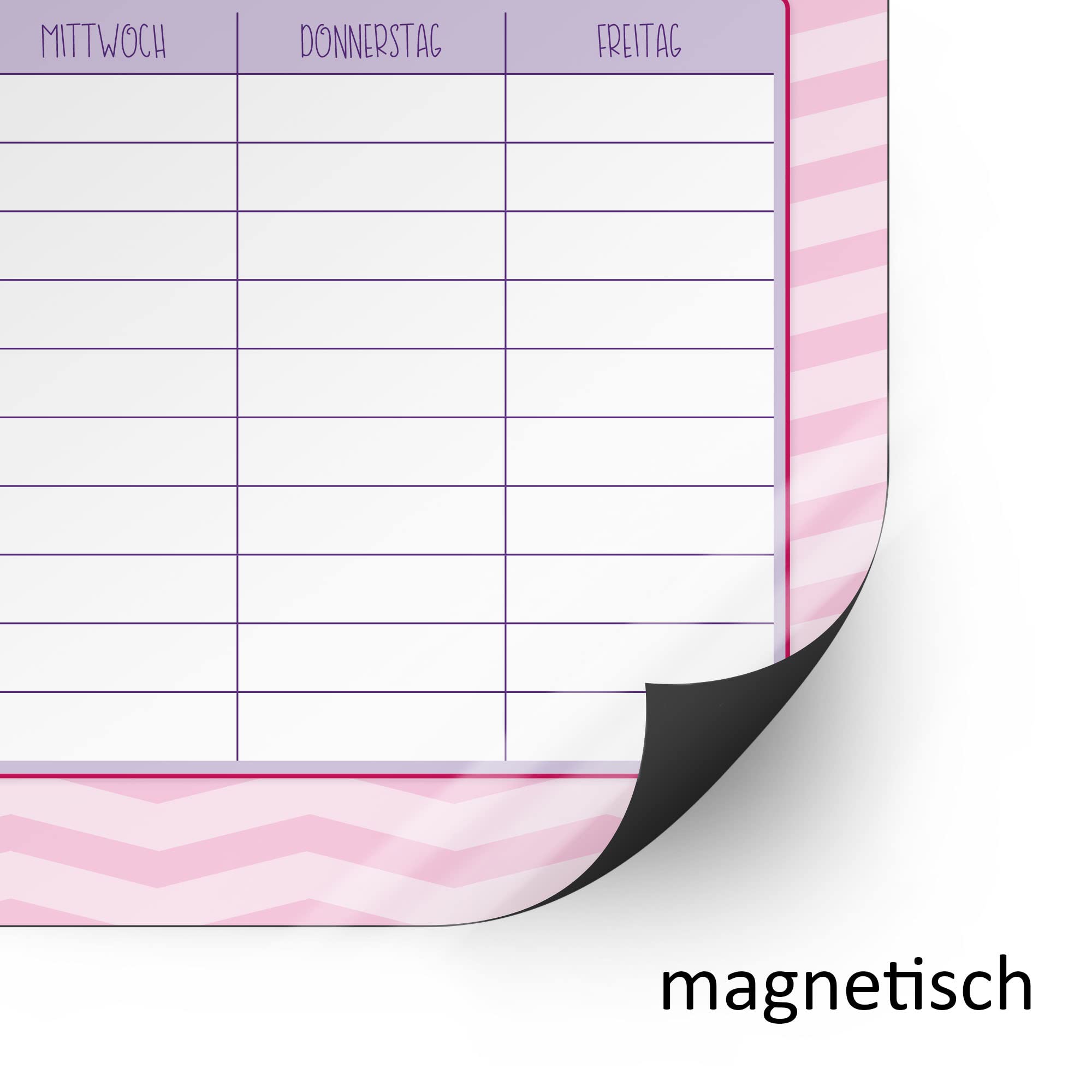 Egal ob für Gross oder Klein - taucht ab in die magische Welt der Meerjungfrauen und versüsst euch mit dem pinken Blickfang den Tag. Der Stundenplan ist mit einem non permanent Marker beschreibbar und wieder abwischbar. Verwendungshinweis: Stundenplan und Auflagefläche sollten sauber, staubfrei und fettfrei sein, damit die Magnetfolie optimal am Untergrund hält. Die Haftkraft ist abhängig vom Eisengehalt des Untergrundes sowie Position der Magnetfolie.