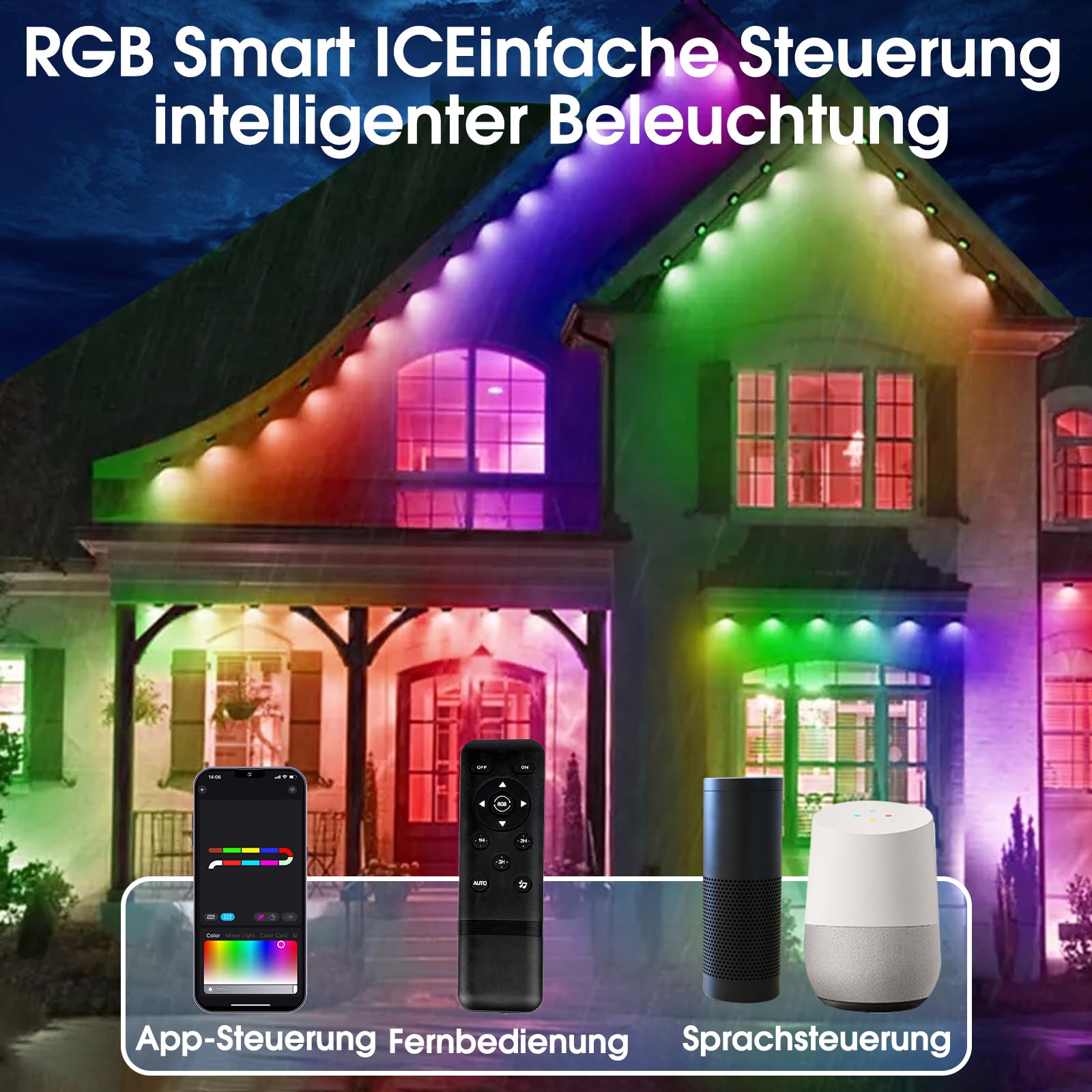 - [Wasserdicht dicht Dauerhaft] Diese Traufe Aussenleuchte ist IP65 bewertet und besteht aus UV-beständigem Material. Der LED-Controller und das Netzteil sind IP67 wasserdicht,Mit bis zu 50.000 Stunden Gebrauch kann es für Aussendekoration das ganze Jahr über verwendet werden und widersteht rauen Wetterbedingungen von -20°C bis 60°C. Wir sind hier, um Ihnen rund um die Uhr zu helfen. Mit einer 2-jährigen Garantie und Rücksendungen.