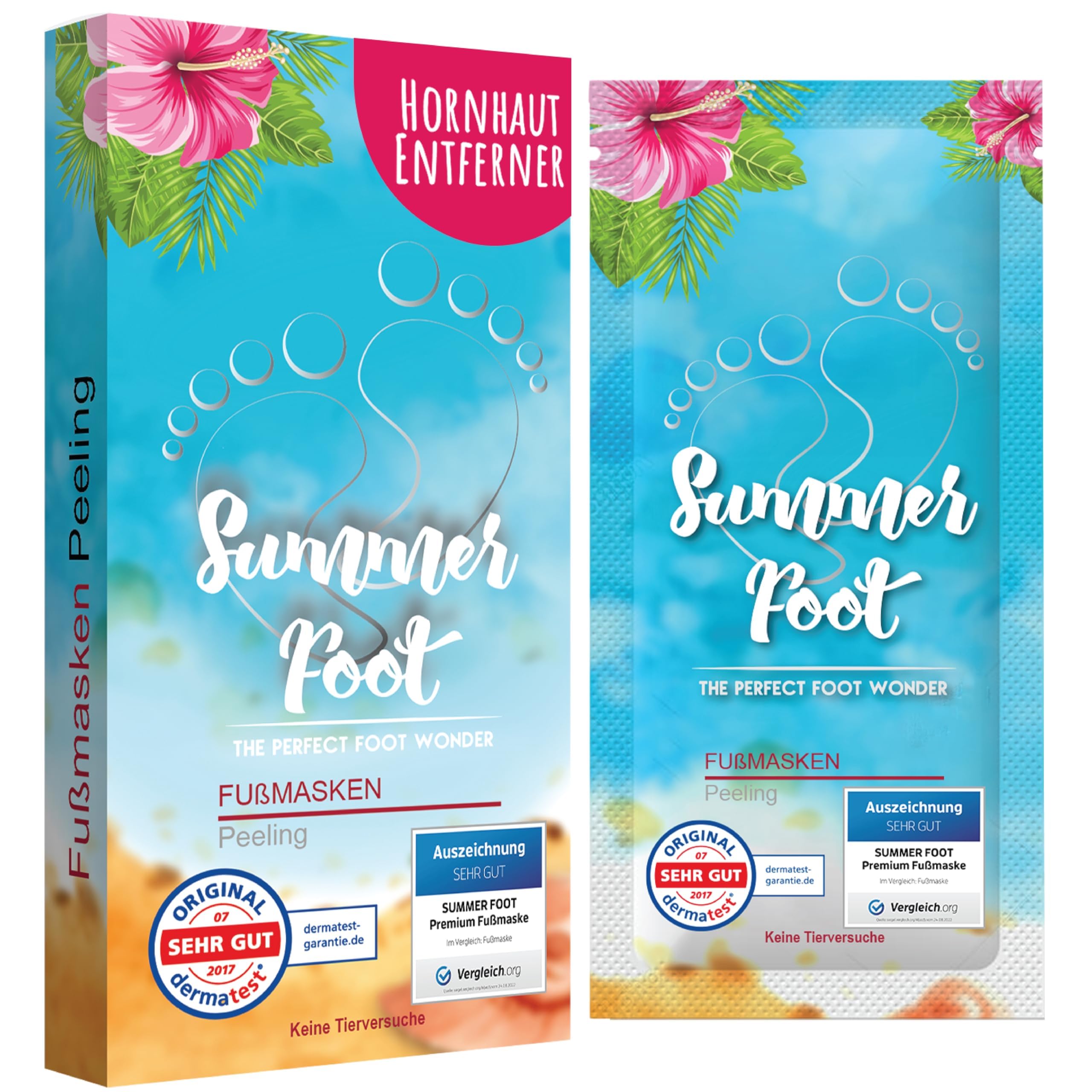 Haben Sie sich schon immer schöne und gepflegte Füsse gewünscht? Unsere Summer Foot Premium Fussmasken (1 Paar = 2 Fussmasken, eine für jeden Fuss) bieten eine sanfte, einfache und bequeme Methode zur Entfernung von abgestorbenen Hautzellen, Schrunden und Schwielen an den Füssen. Das speziell entwickelte Wirkstoffgel der Fussmasken sorgt für geschmeidig weiche Füsse, ganz ohne Hornhauthobel.
