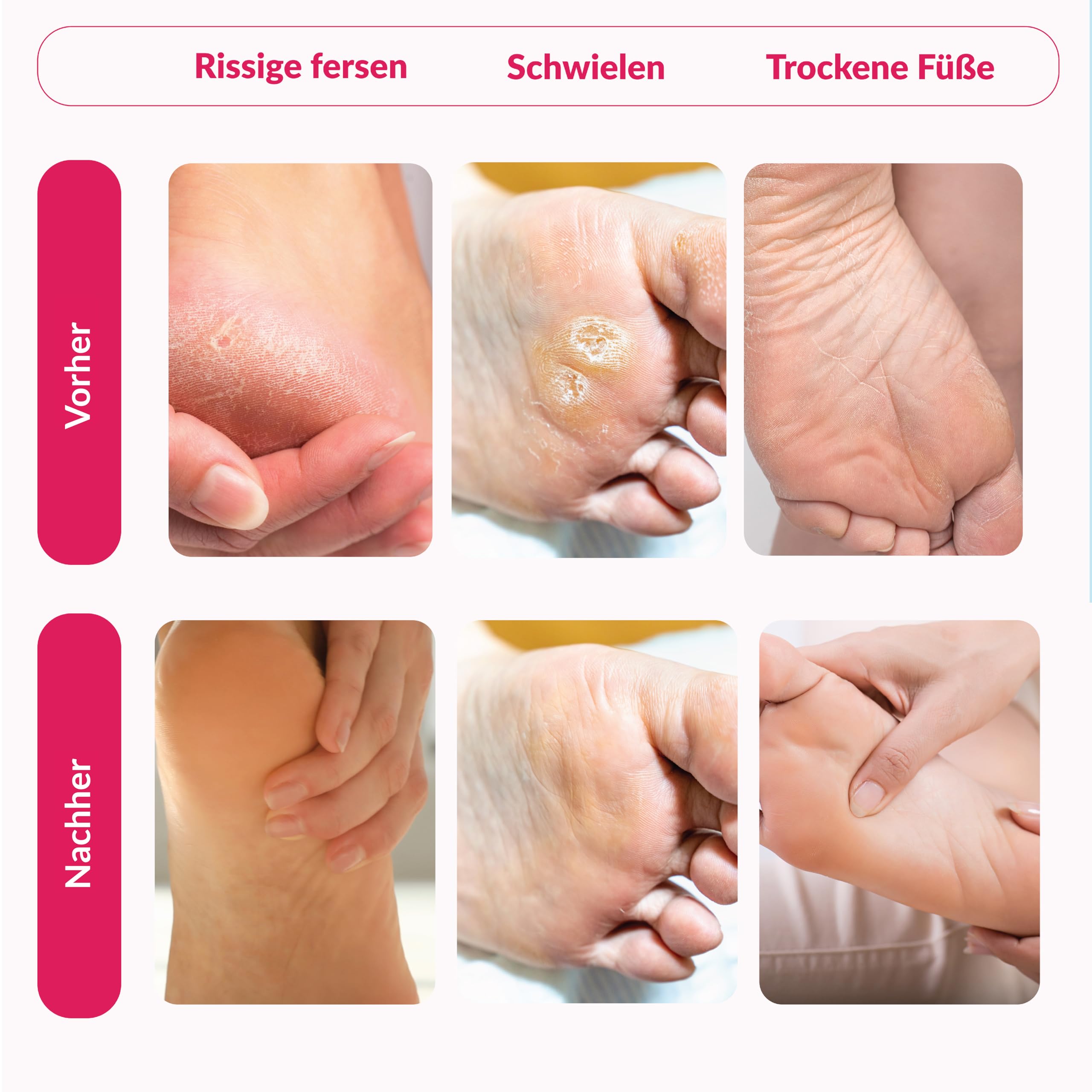 - Ergebnis: Samtweiche, glatte Fusshaut nach der Anwendung
