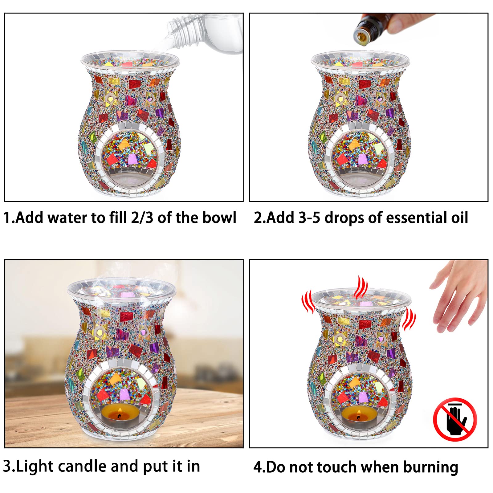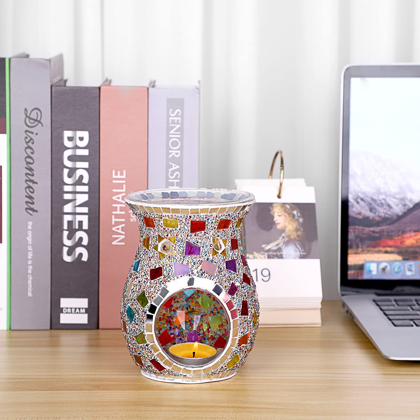 SUMNACON Glass Duftlampe mit Kerzenhalter Teelichthalter Kalebasse Aromalampe Duftlicht Aromabrenner für Duftöl und Duftwachs Mosaik-Muster(Bunt)
