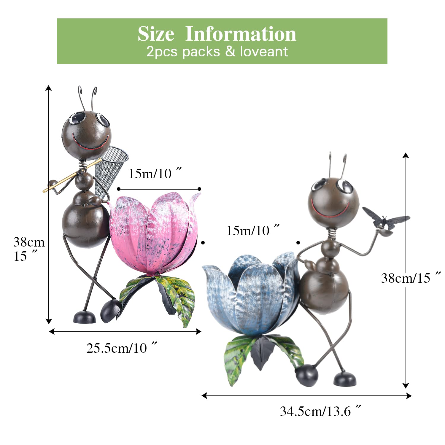 Sungmor Niedliche Metall-Pflanzgefässe, schöne und Bezaubernde Tier-Blumentöpfe, 38,1 cm hoch, grosse Ameisenstatue, einzigartige dekorative Vintage-Gartentöpfe für 14 cm Blumen, Pflanzen, Kräuter,