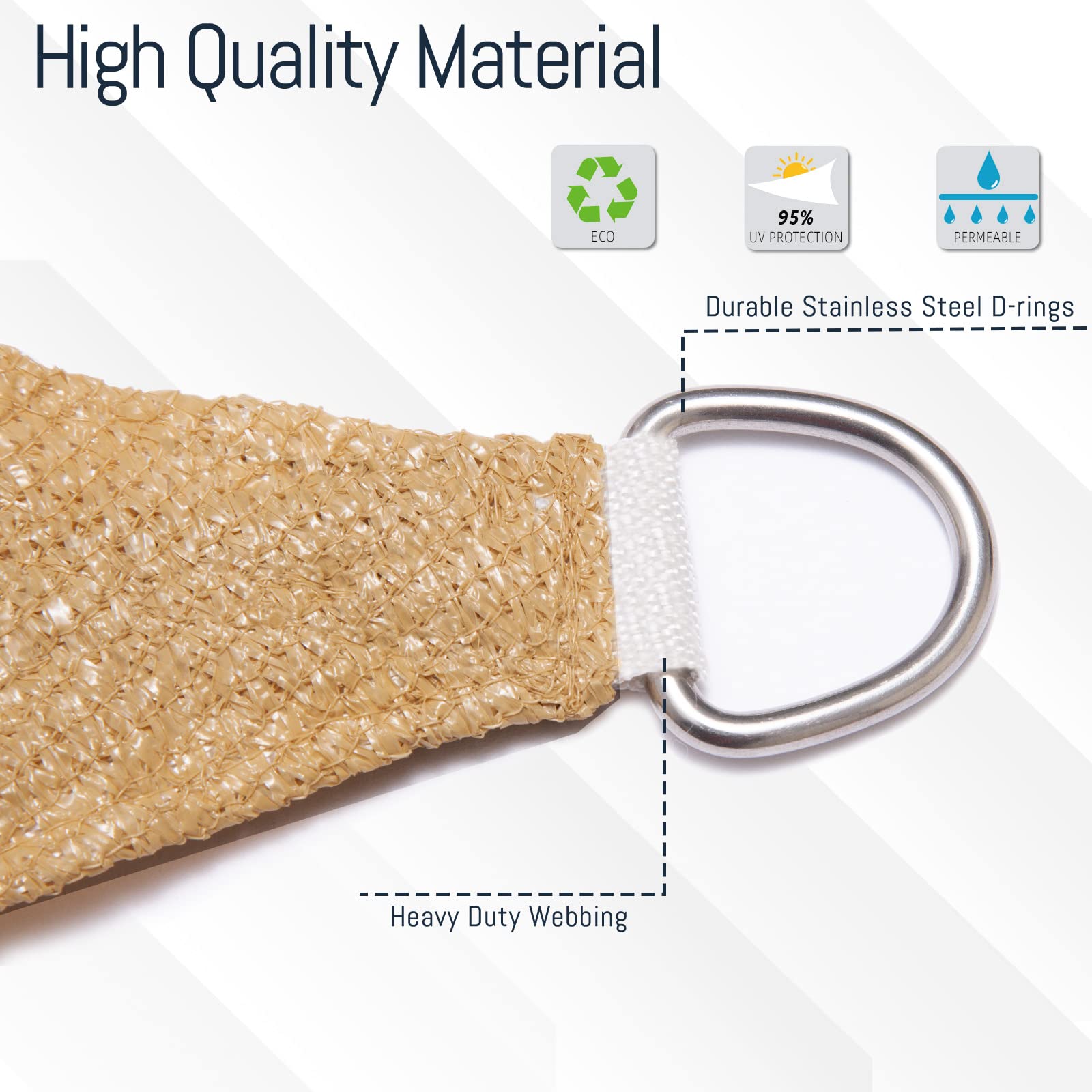 HDPE reduziert Wärmeübertragung: Hergestellt aus 100 % brandneuem HDPE-Material zur effizienten Reduzierung der Temperatur unter Segeln um 6,5 °C, hervorragende Atmungsaktivität, damit Brise durchdringen kann, bietet einen kühlen und luftigen Schutz an heissen Tagen.