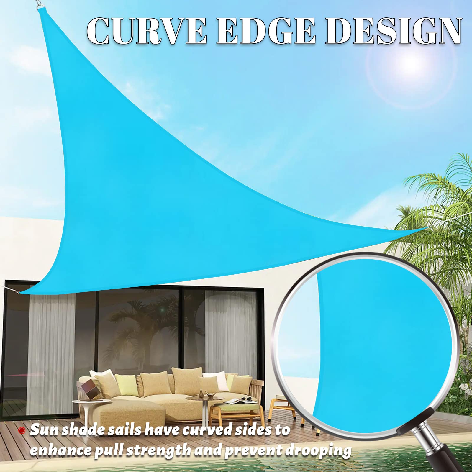Attraktives Segel für Dekoration und effektive Schattierung: Dreieckiges Sonnensegel, wunderschöne Farbe, um Aufmerksamkeit zu erregen, perfekt zum Beschatten der Terrasse, um Ihre Teestunde im Freien mit Familie oder Freunden zu geniessen.