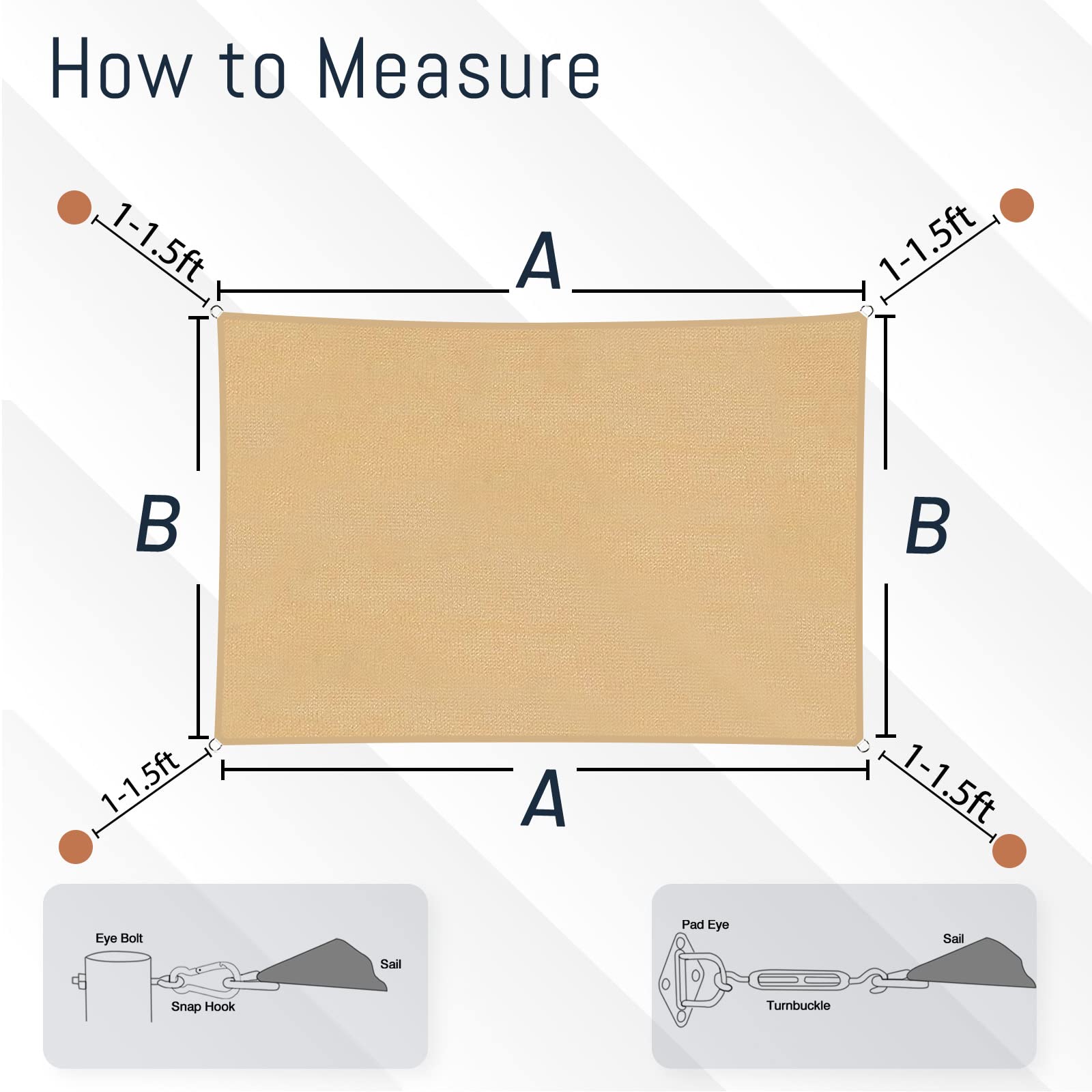 SUNLAX Sonnensegel, 1,8 m x 3,4 m, Sand, gerade, rechteckig, für Aussenbereich, Terrasse, Pergola, Abdeckung, Sonnensegel, UV-blockierende Canovas-Abdeckungen