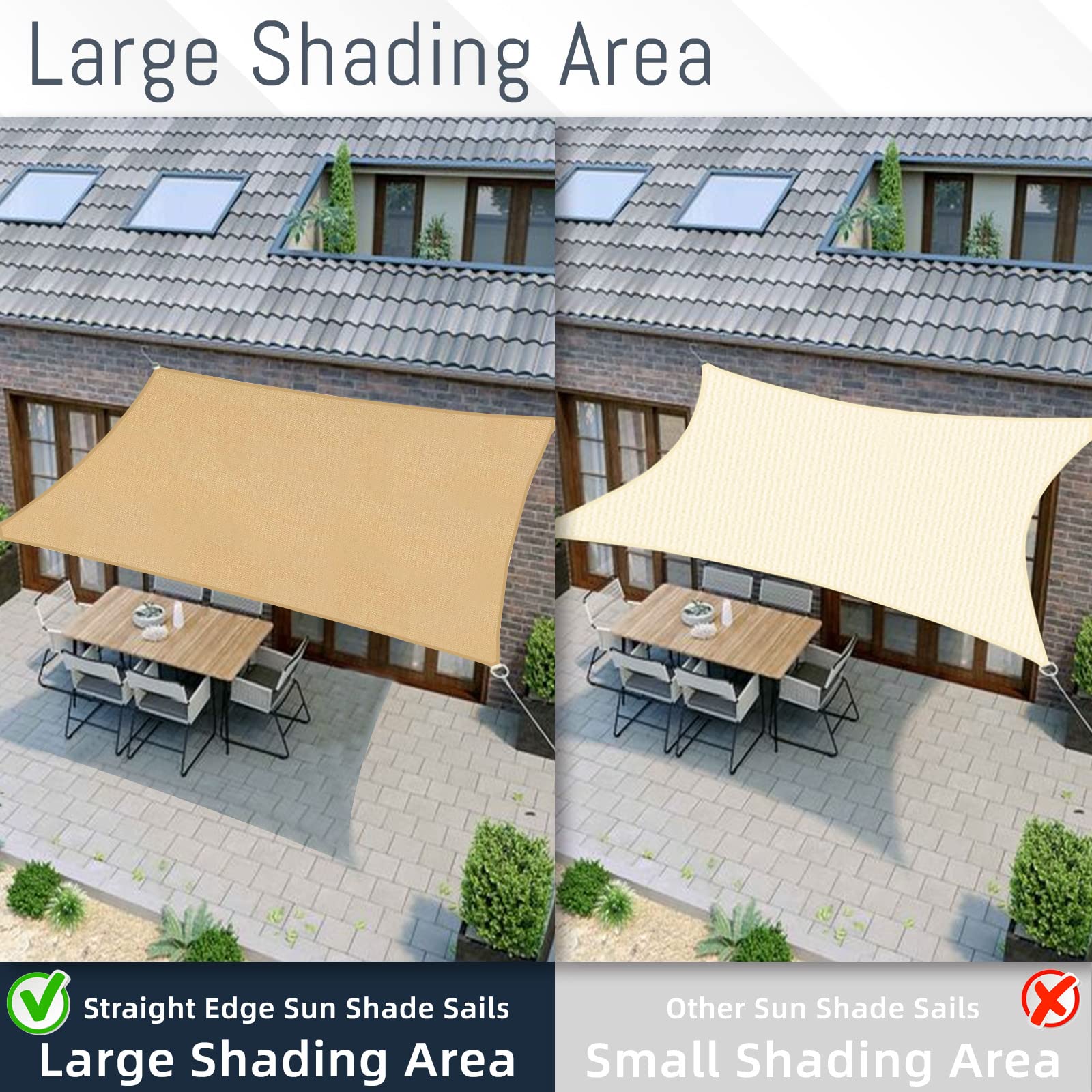HDPE reduziert Wärmeübertragung: Hergestellt aus 100 % brandneuem HDPE-Material zur effizienten Reduzierung der Temperatur unter Segeln um 6,5 °C, hervorragende Atmungsaktivität, damit Brise durchdringen kann, bietet einen kühlen und luftigen Schutz an heissen Tagen.