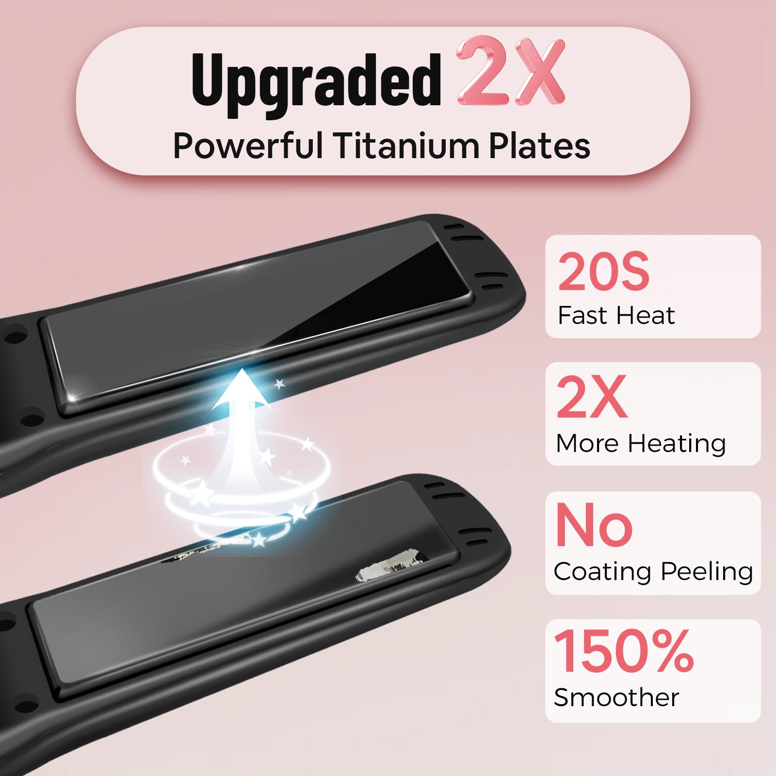 Die Titan-Heizplatten sorgen fuer eine gleichmaessige Waermeverteilung, reduzieren Hitzeschaeden und ermoeglichen ein glattes, glaenzendes Finish oder definierte Locken. Dank des schnellen Aufheizens ist das Mini Reiseglaetteisen in kurzer Zeit einsatzbereit – ideal fuer schnelle Touch-ups.