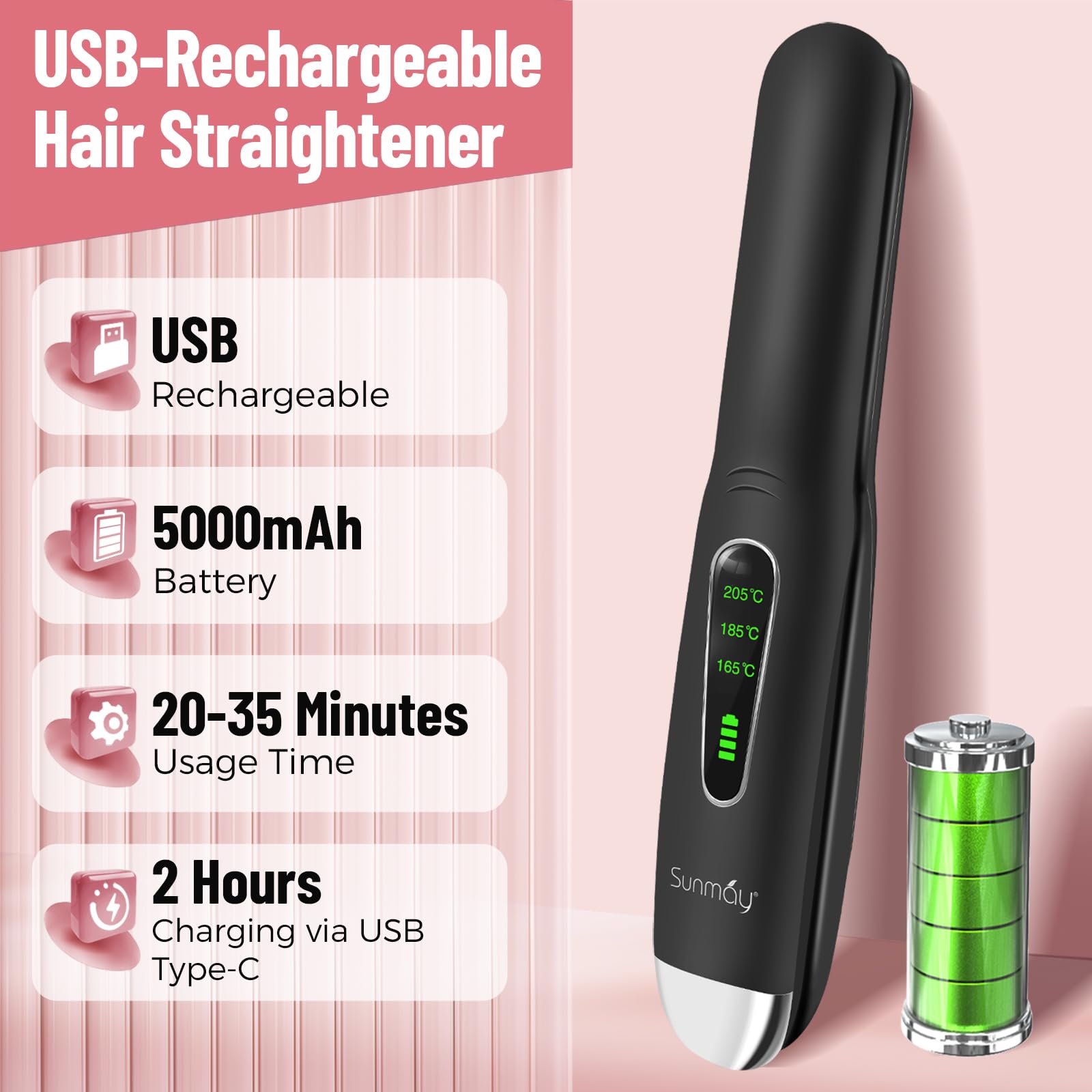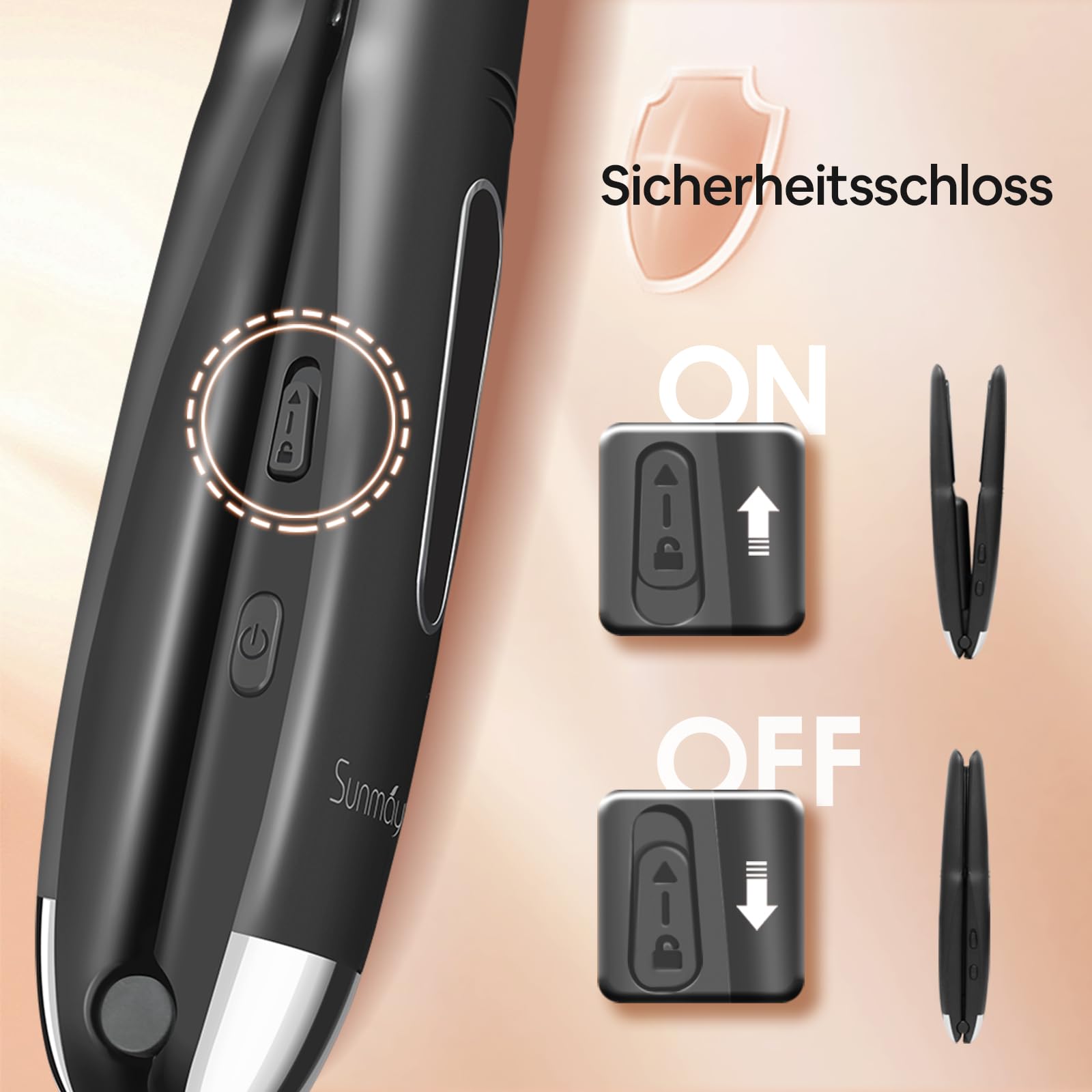 Das SUNMAY Voga Akku Glaetteisen vereint Leistung, Flexibilitaet und Mobilitaet und ist die perfekte Wahl fuer professionelles Styling – jederzeit und ueberall.