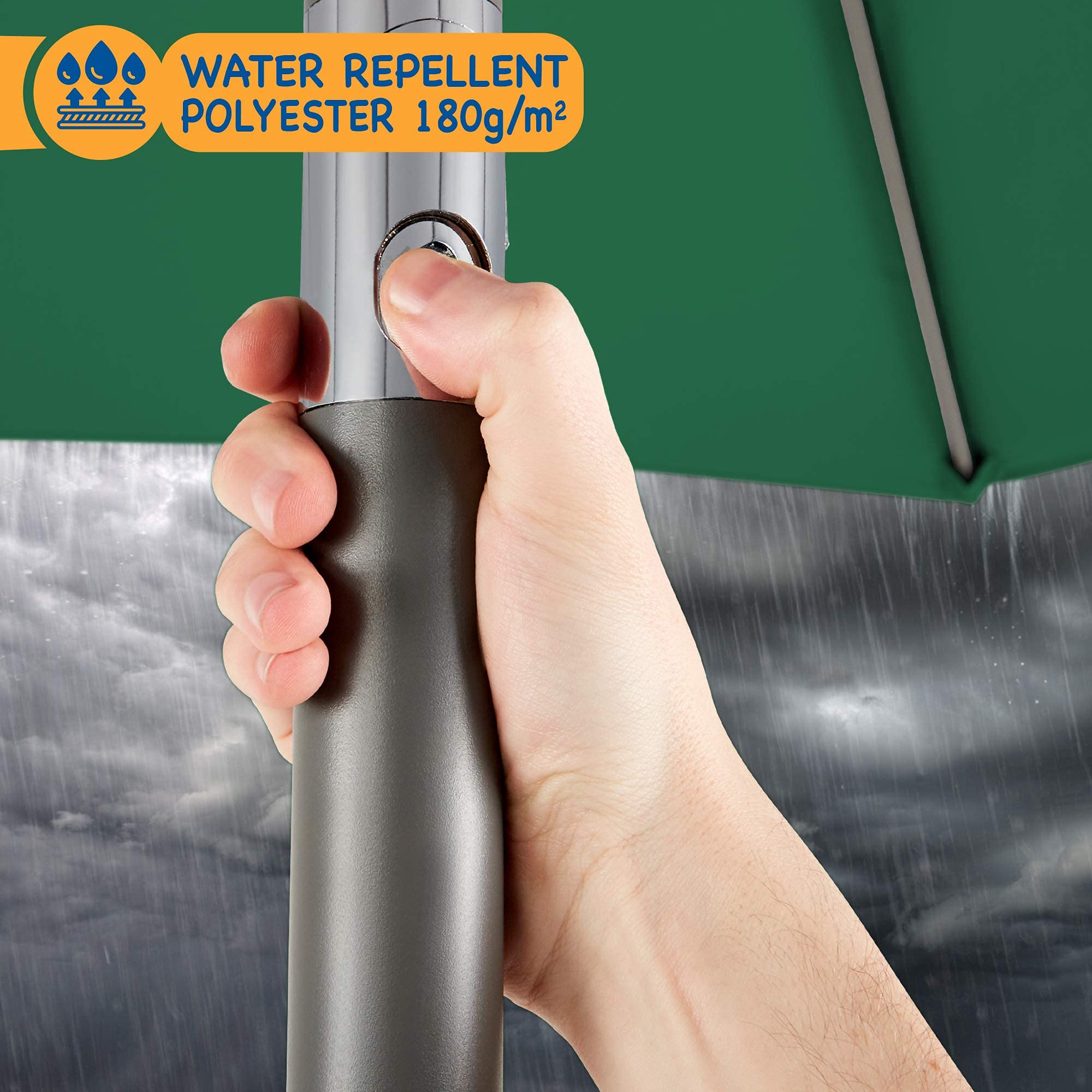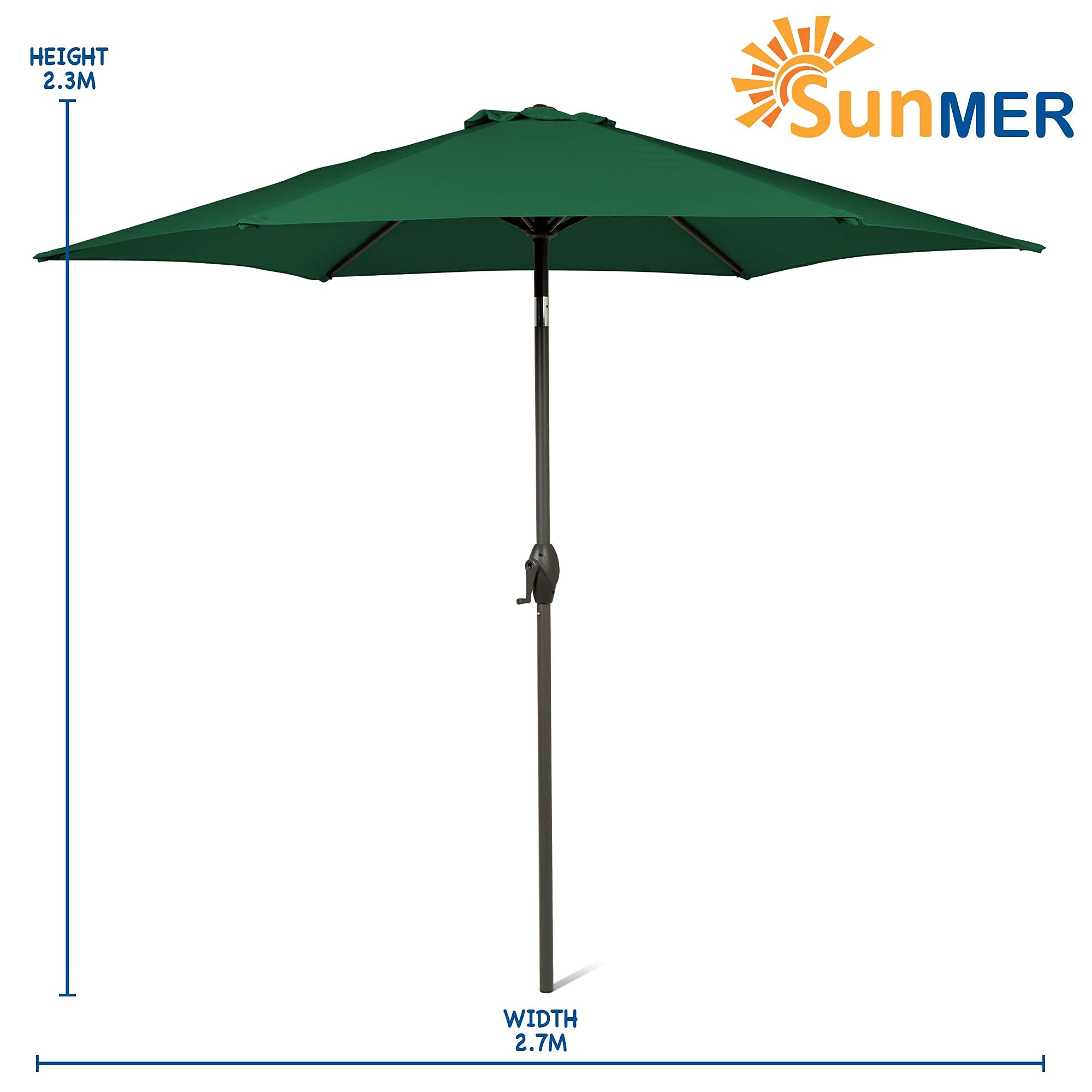 SUNMER 2,7 m grüner Sonnenschirm Gartenschirm Sonnenschutz | Polyester 180 g/m² (UV 30+) | Kurbelmechanik | Stangenbreite ø 38 mm (exkl. Boden)