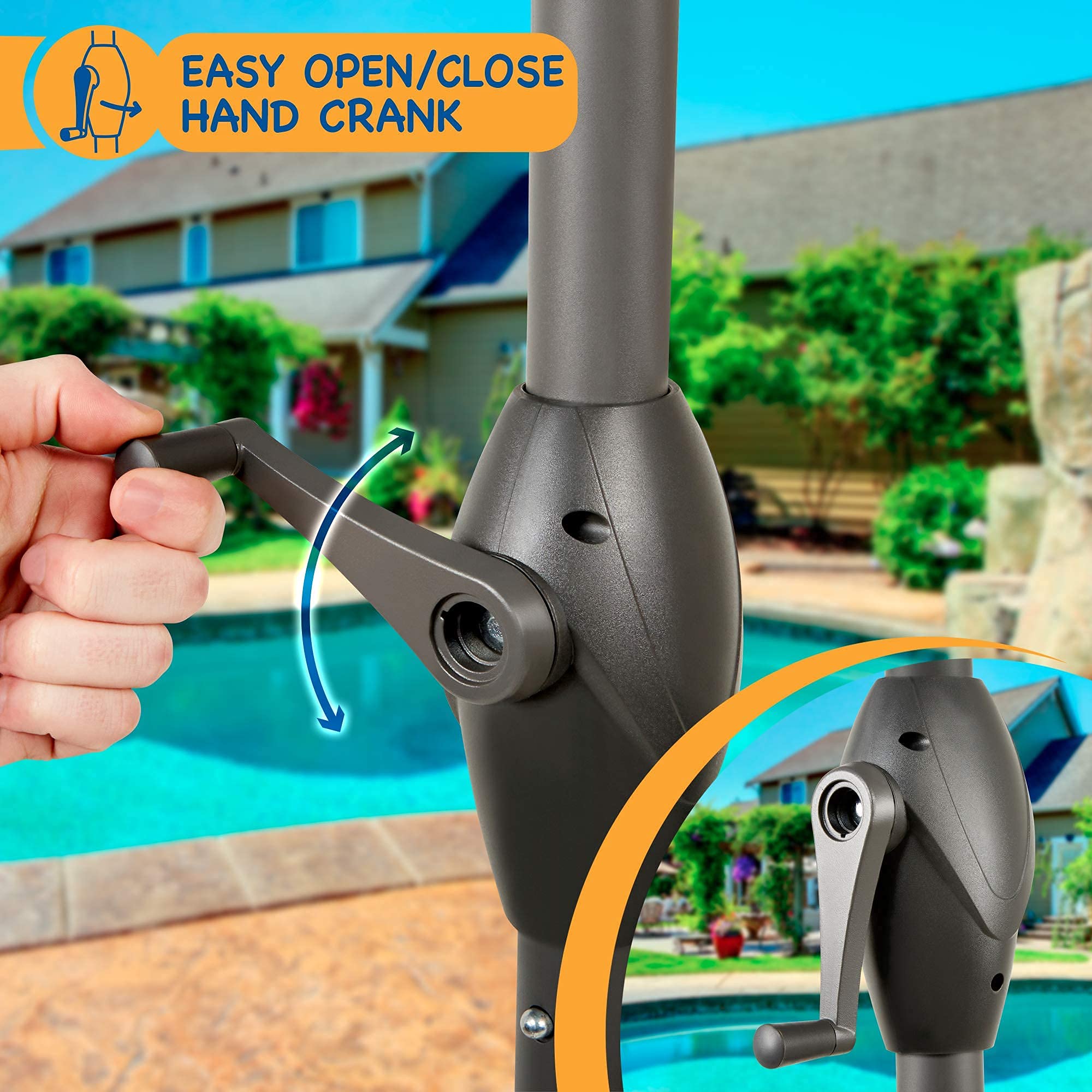 SUNMER 2,7 m Elfenbeinfarbener Sonnenschirm Gartenschirm Sonnenschutz | Wasserabweisendes Polyester 180 g/m² (UV 30+) | Leicht zu öffnen und zu schliessen | Kurbelmechanismus | Stangenbreite ø 38 mm (exkl. Sockel)
