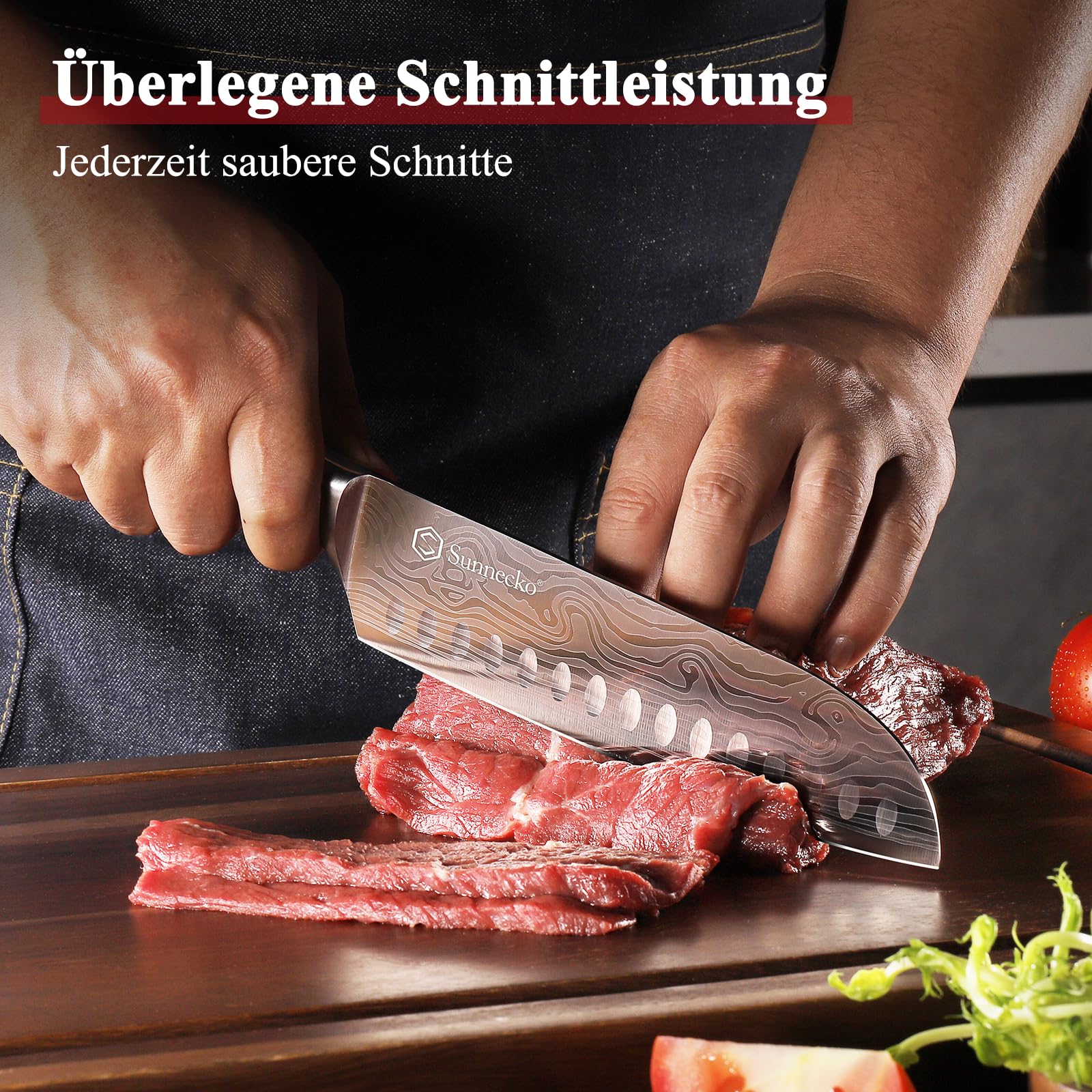 Sunnecko 17cm Santoku Messer Küchenmesser Kochmesser - Kochmesser Profi Messer Japanisches Messer Scharf Küchenmesser Allzweckmesser Küche Chef Knife
