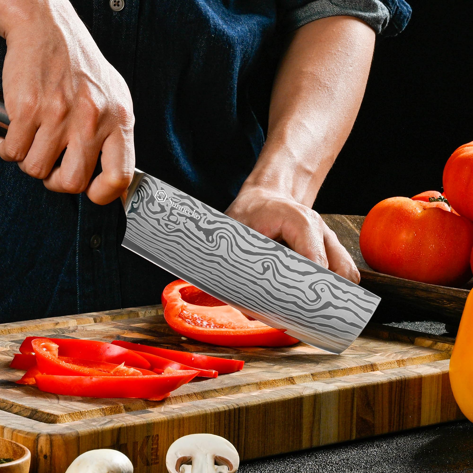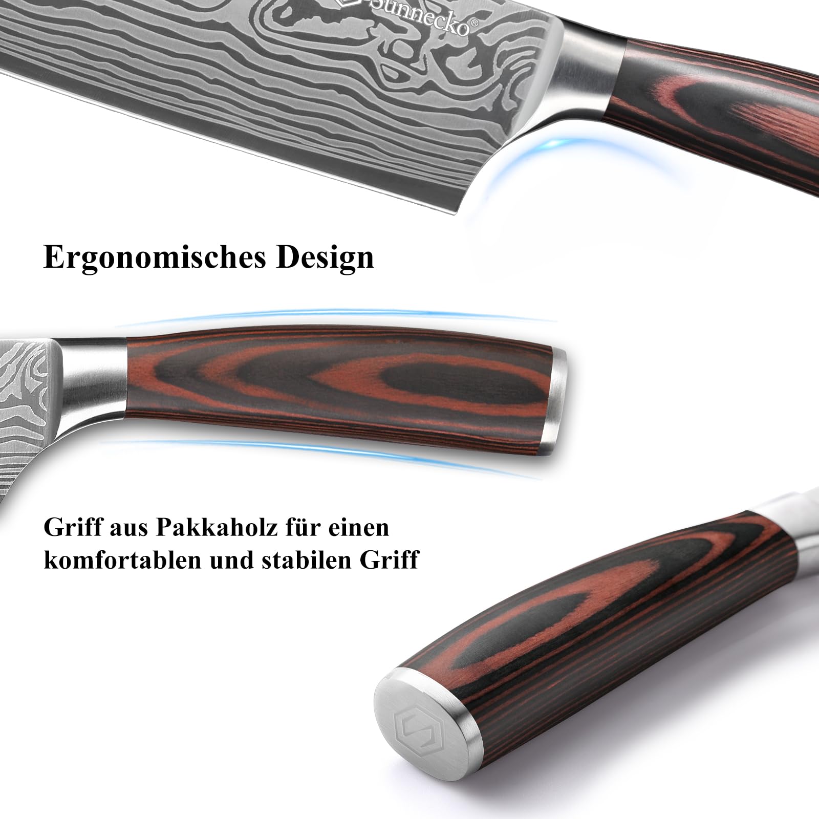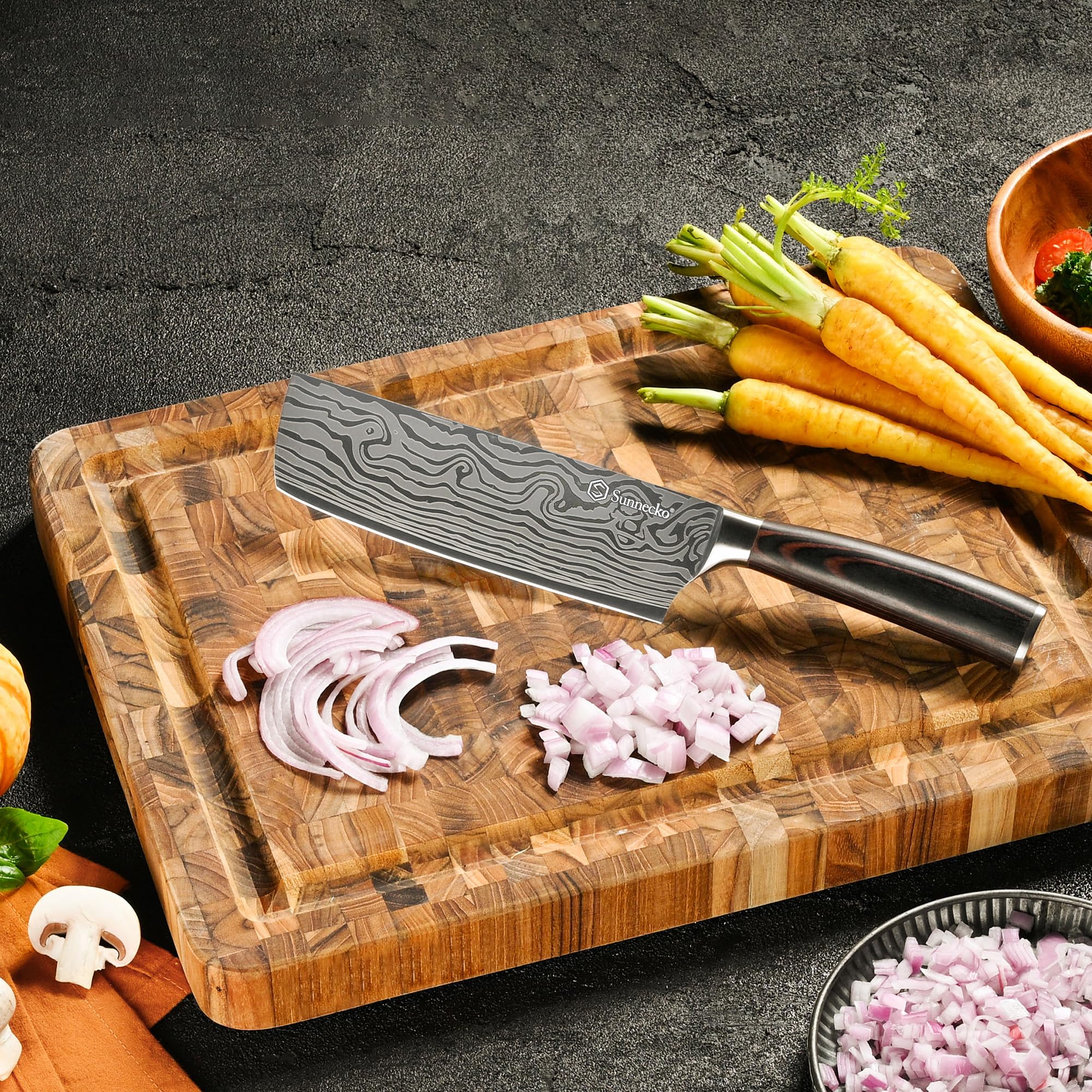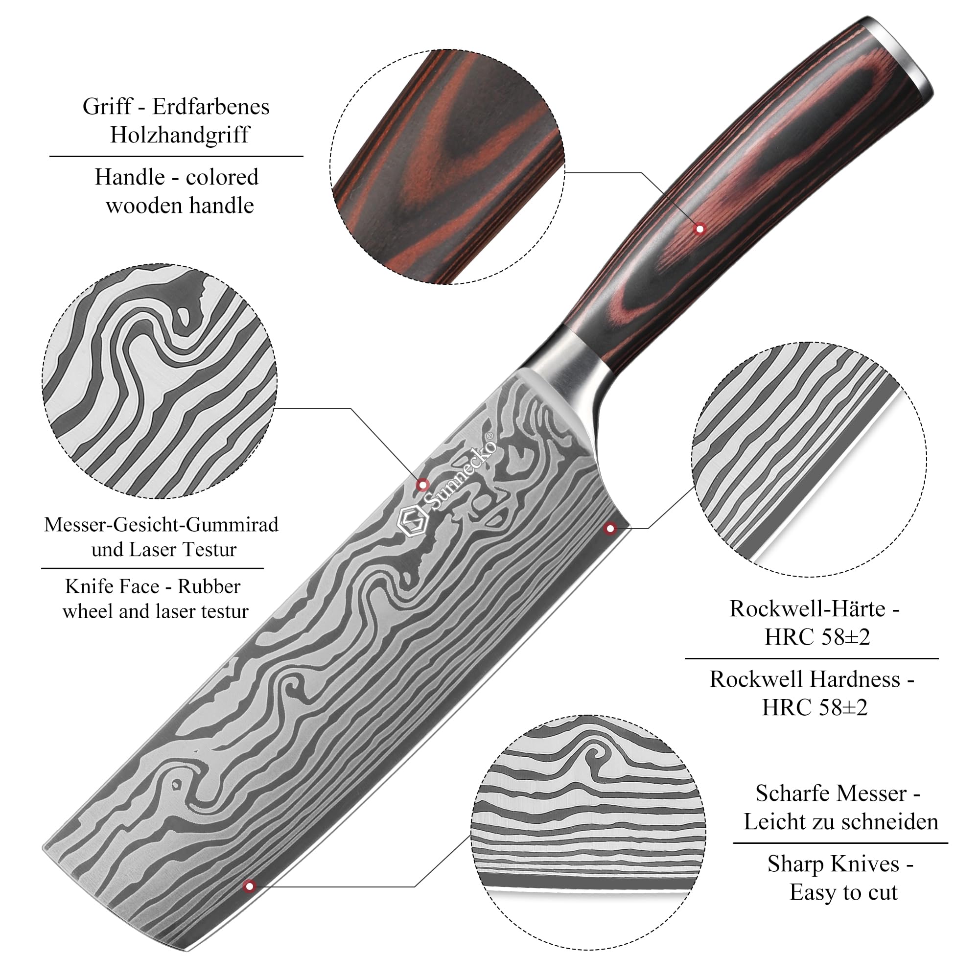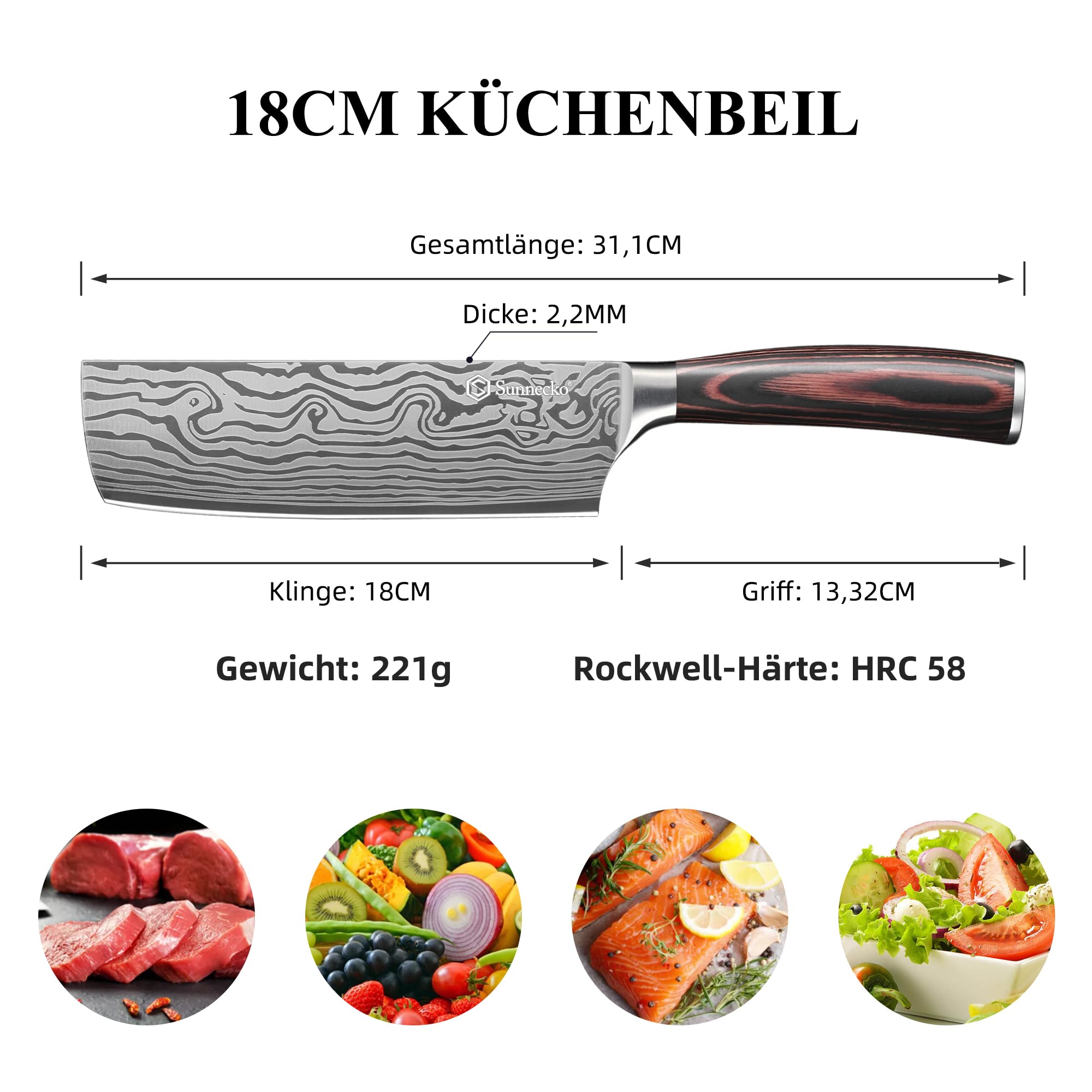 Sunnecko 18cm Küchenbeil Messer Küchenmesser - Klein Hackmesser Hackbeil Küchenmesser Kochmesser Profi Messer Edelstahl mit Pakkaholz Griff in Geschenkbox, Chang Serie