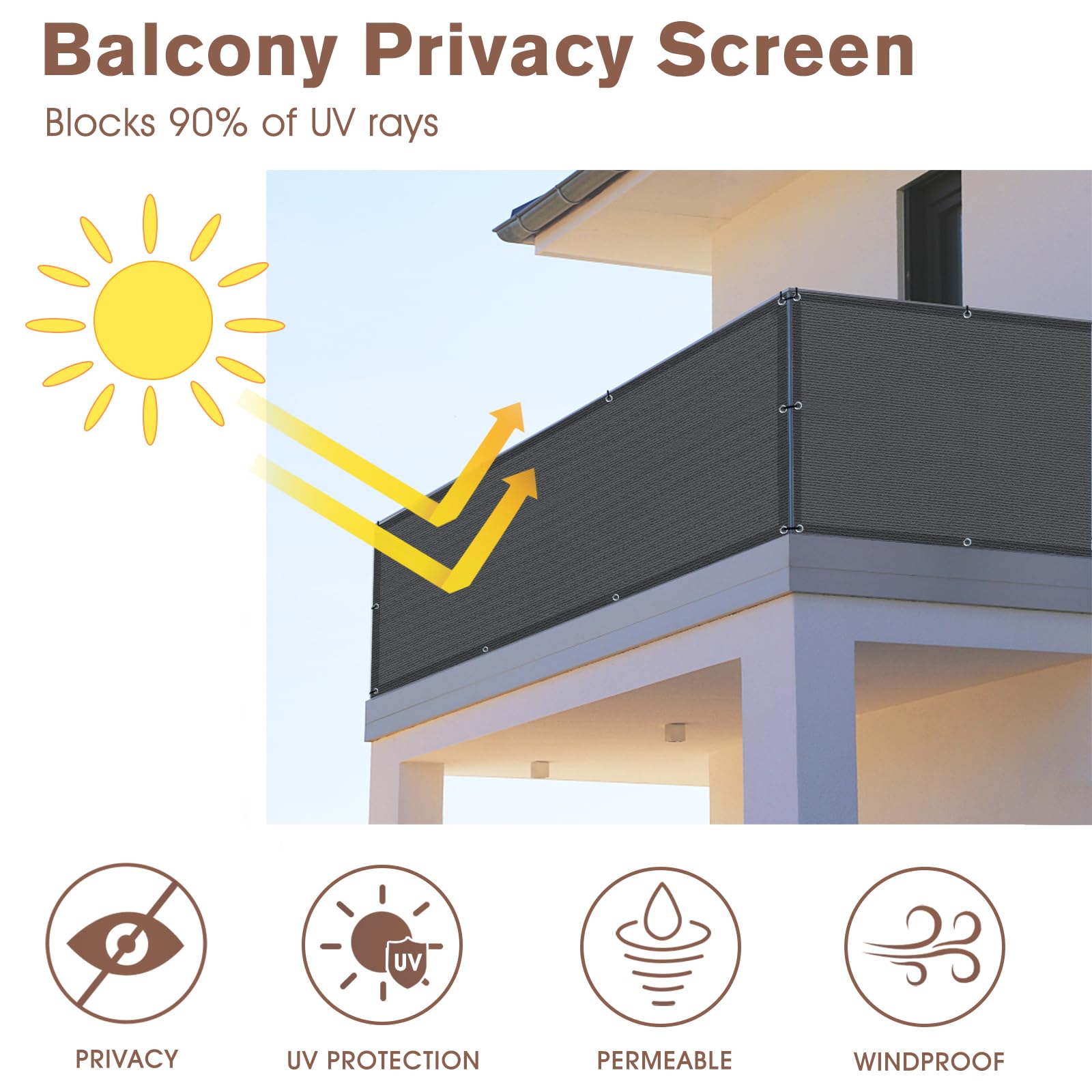 SUNNY GUARD 91,4 x 40,6 cm, dunkelgrau, Sichtschutzzaun, Wohnungen, Geländer, robuste Netz-Windschutzscheibe für Outdoor, Hinterhof, Terrasse