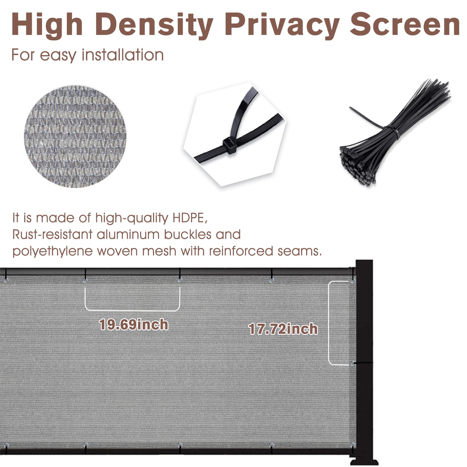 SUNNY GUARD Sichtschutzmatte für Balkon, Terrasse, Zaun, Wohnungen, Geländer, strapazierfähig, Netz-Windschutzscheibe für Aussenbereich, Hinterhof, Terrasse, 90 x 40 cm, Braun/Grau