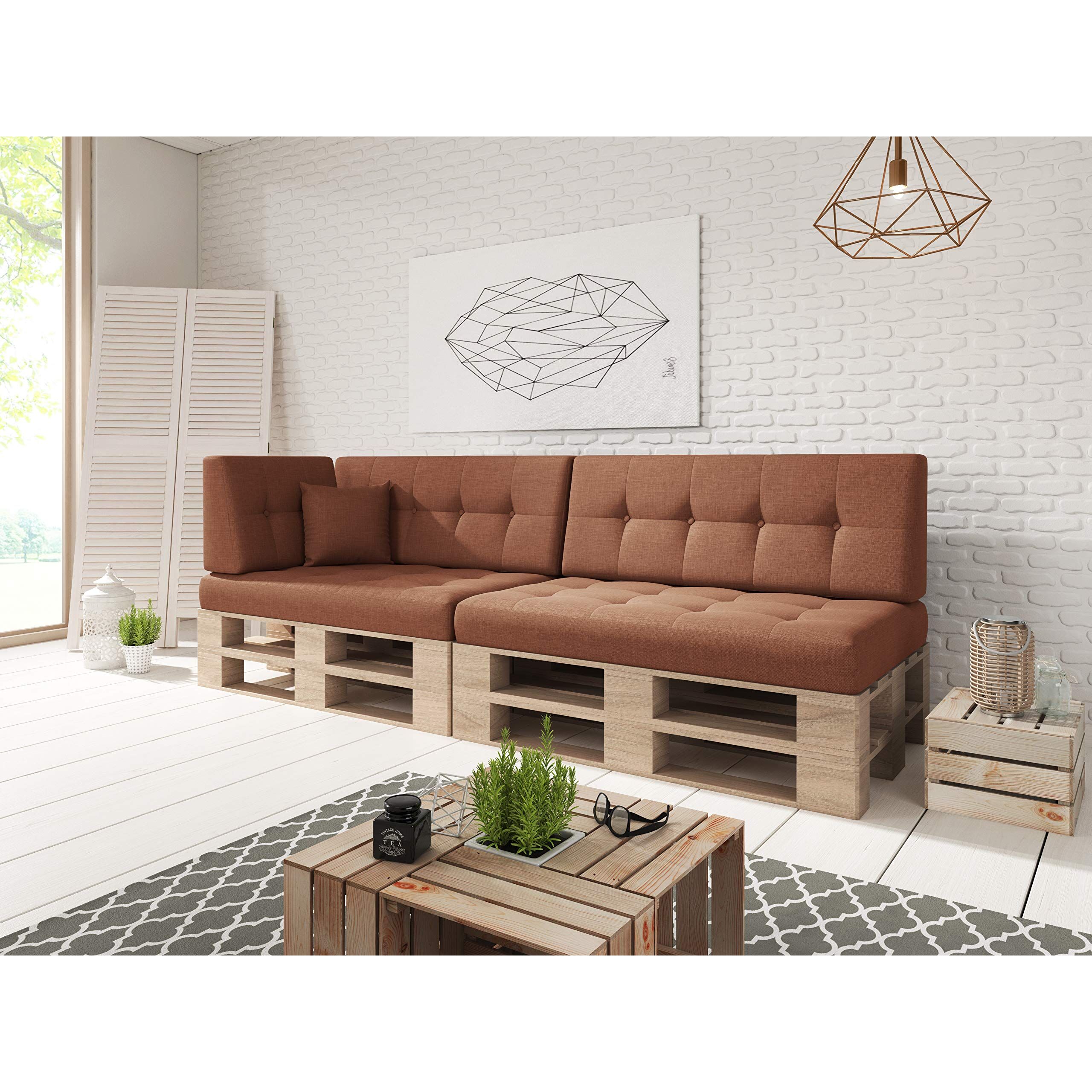 sunnypillow Palettenkissen für Palettenmöbel - 6er Set - Palettenauflage für Palettensofa - Palettenpolster für Garten, Gesteppte Kissen mit Knöpfen für Europaletten - Rückenkissen & Sitzkissen Orange