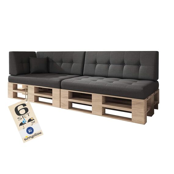 sunnypillow Palettenkissen Outdoor, UV-lichtecht, wasserdicht - 6er Set - Palettenauflage für Palettensofa für Haus, Garten - Palettenpolster für Palettenmöbel - Rückenkissen & Sitzkissen Schwarz