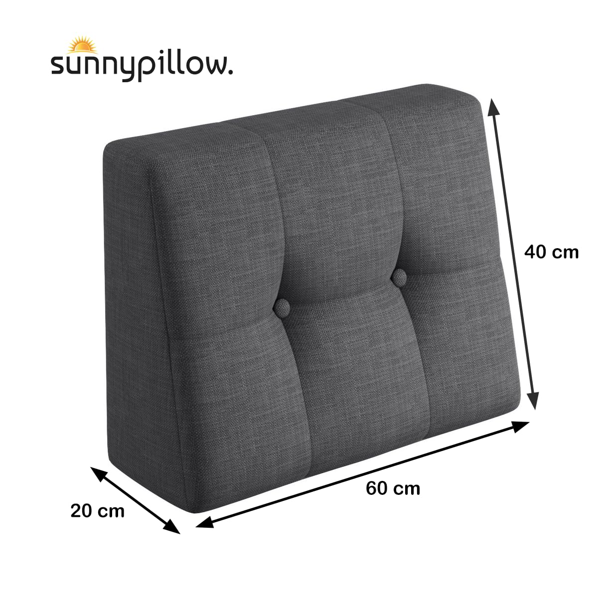 sunnypillow Palettenkissen für Gartenmöbel - Rückenkissen 60x40x20/10cm - Rückenpolster für Bett und Sofa - Palettenpolster für Palettenmöbel - Gesteppte Kissen mit Knöpfen - Rückenlehne Anthrazit
