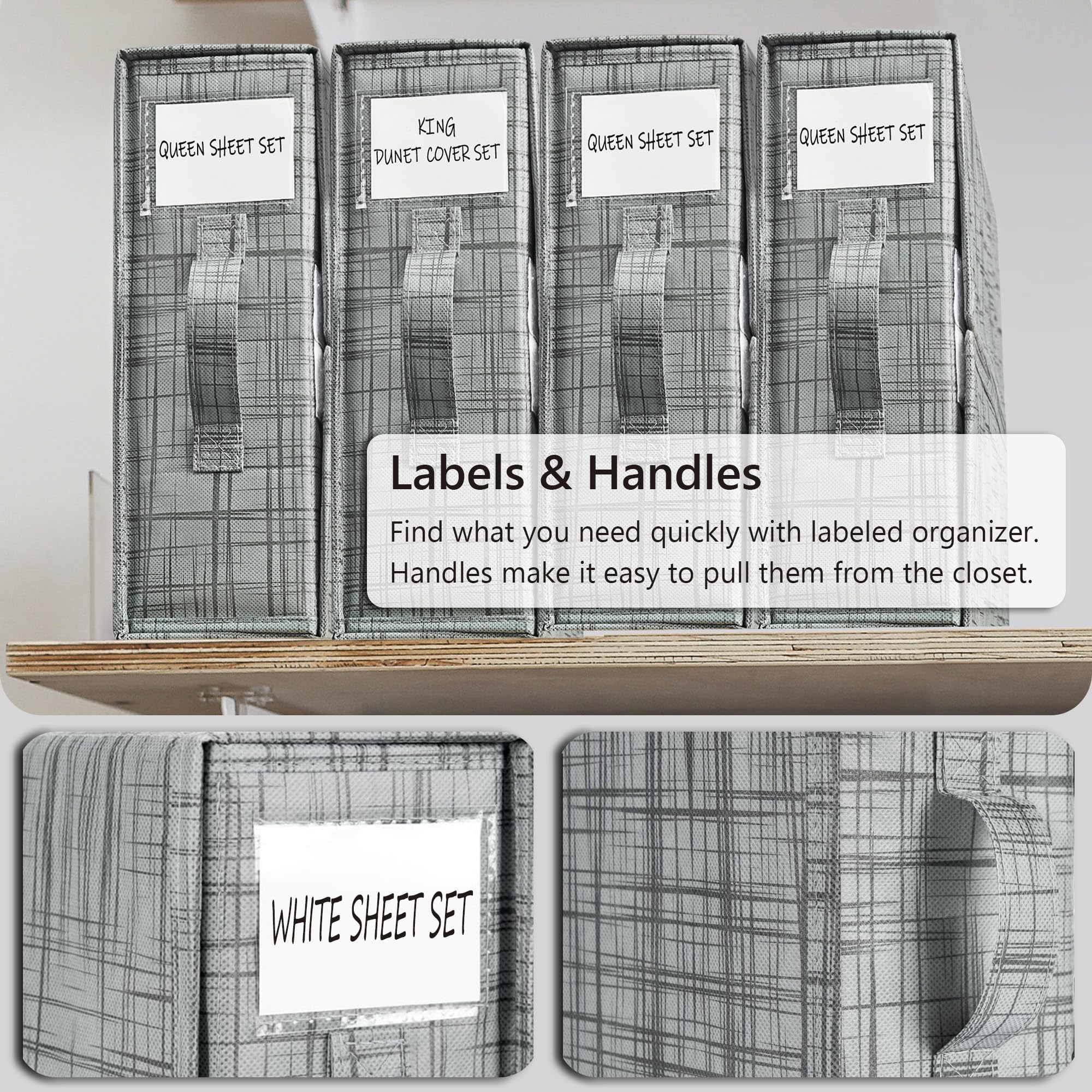 SUOCO SheetCube Bettlaken-Set, Organizer, 4 Stück (Queen-Size- oder King-Size), faltbare Aufbewahrungsbox für Bettbezug-Set, Leinen-Schrank-Organizer für Bettwäsche, Kleidung, Decken, Grau