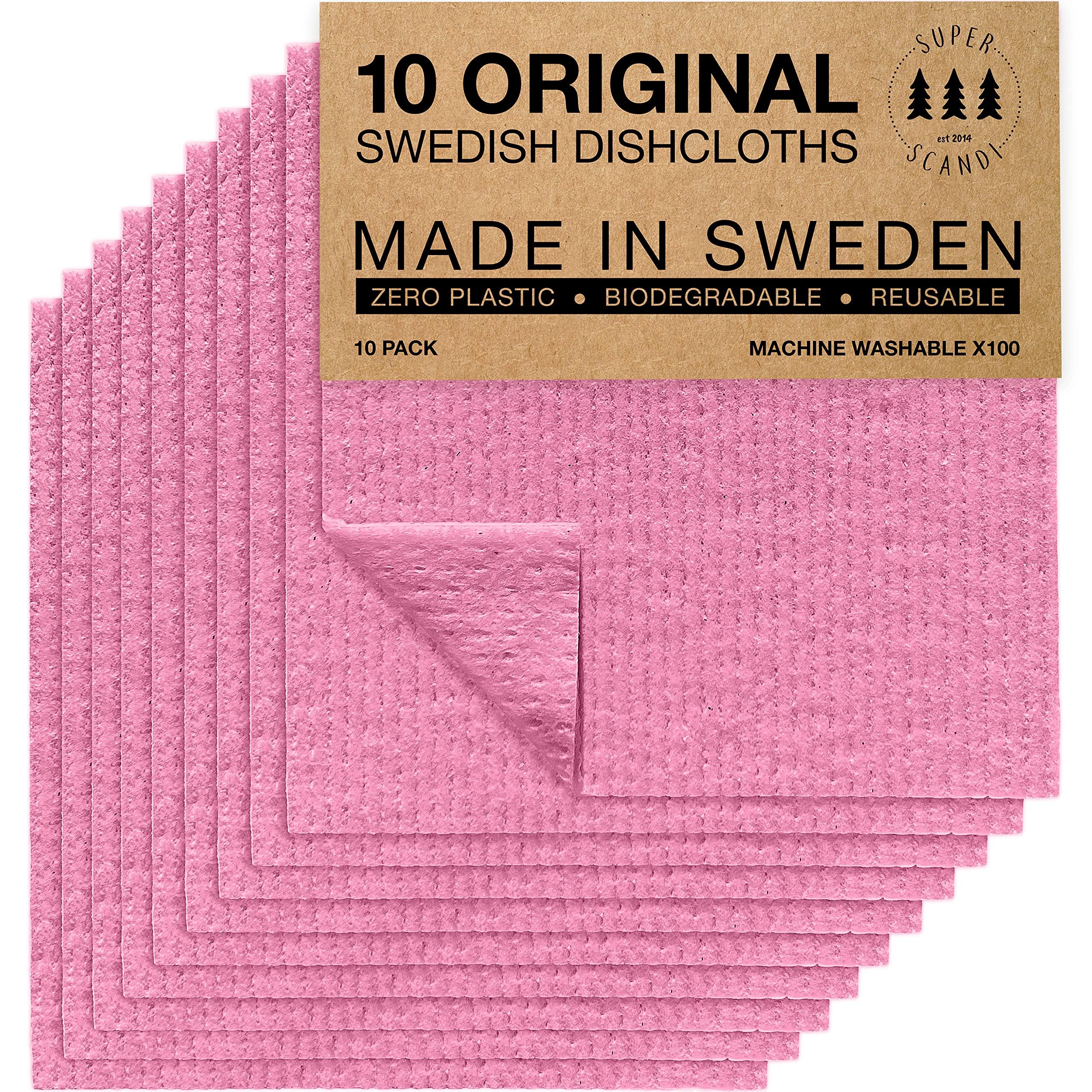 SUPERSCANDI Putzlappen im 10er Pack - 100% Biologisch Abbaubar & Kompostierbar | Wiederverwendbare & Lebensmittelsichere Spültücher Ohne Plastik | Für Jede Oberfläche Geeignete Spüllappen | Pink