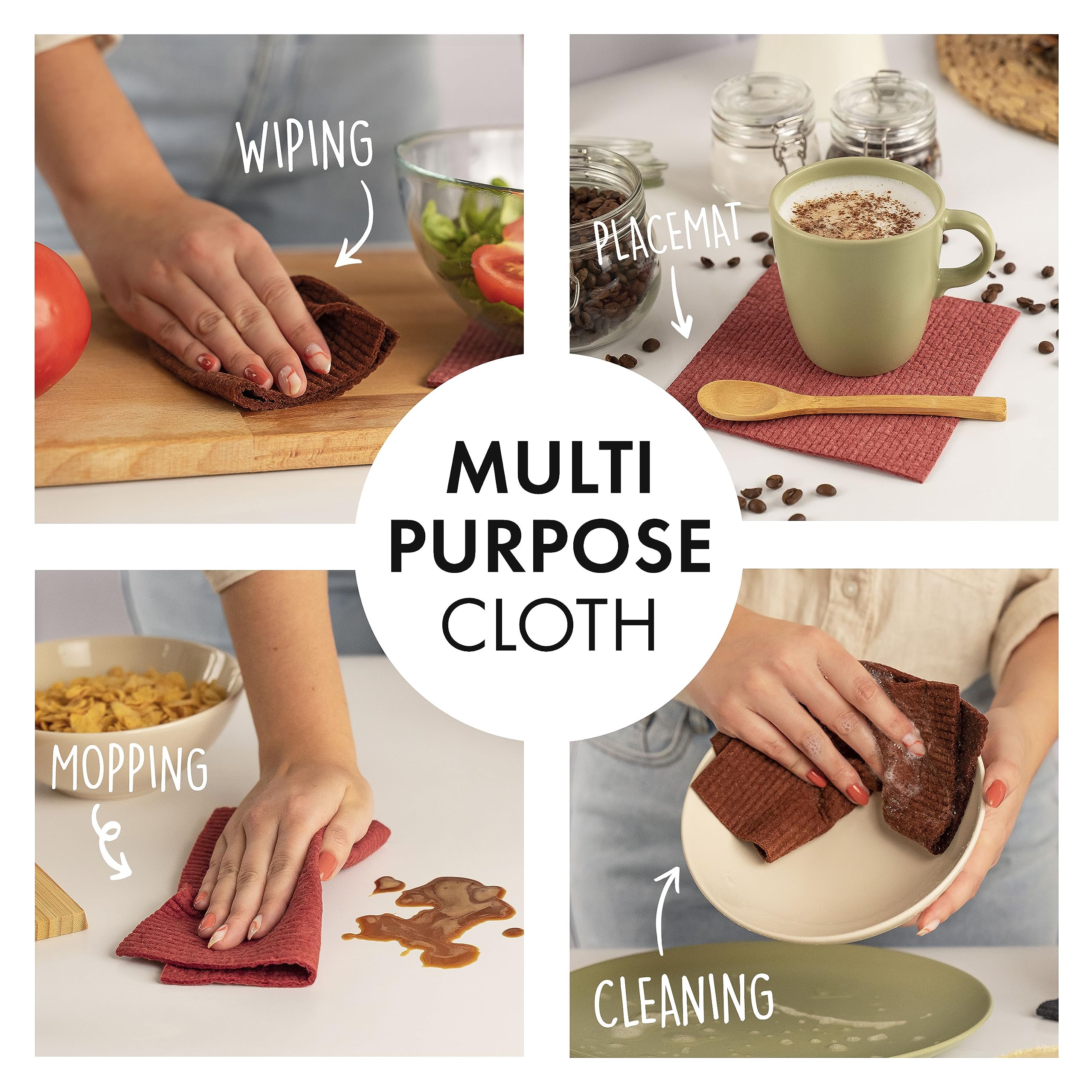 SUPERSCANDI Putzlappen im 6er Pack - 100% Biologisch Abbaubar & Kompostierbar | Wiederverwendbare & Lebensmittelsichere Spültücher Ohne Plastik | Für Jede Oberfläche Geeignete Spüllappen | Rot