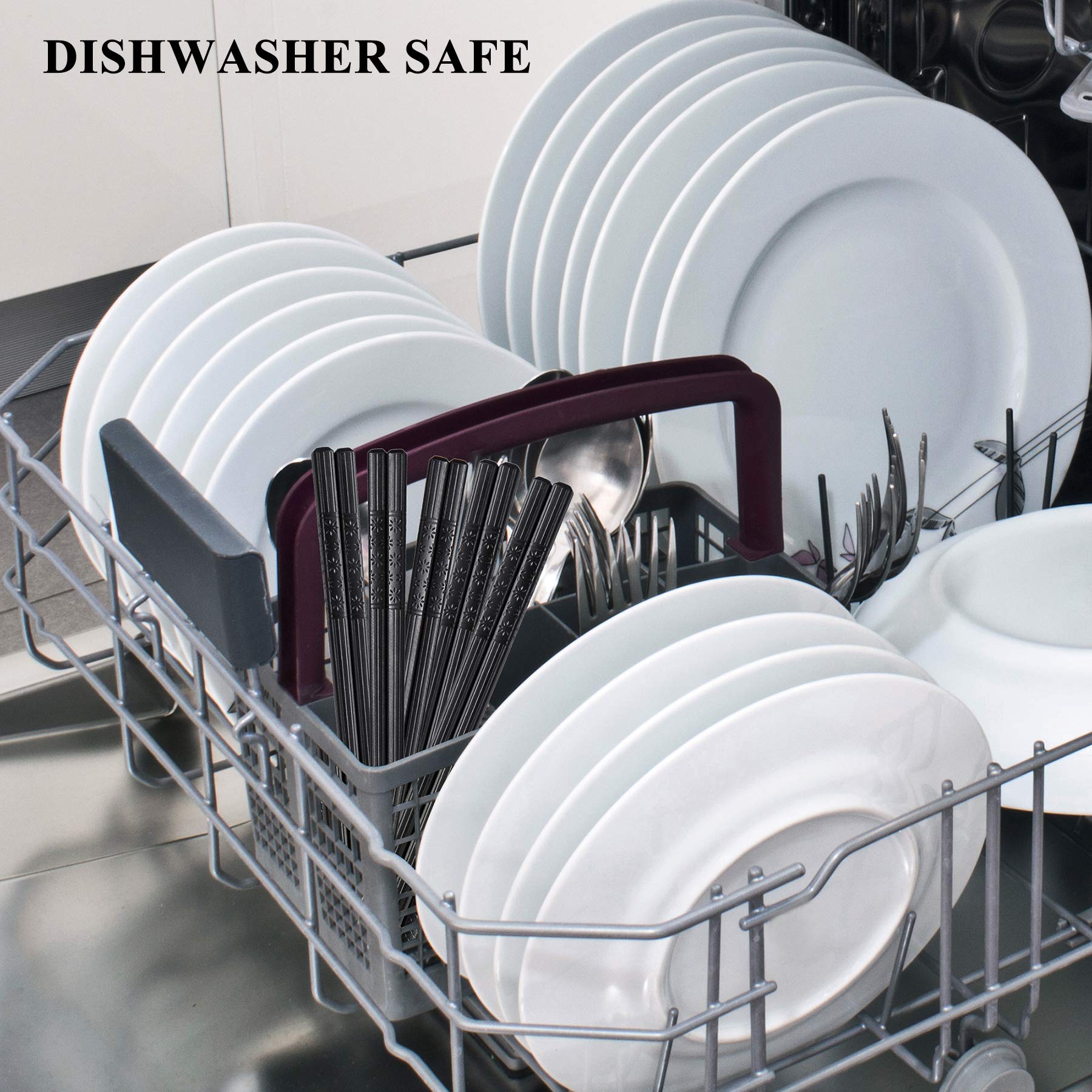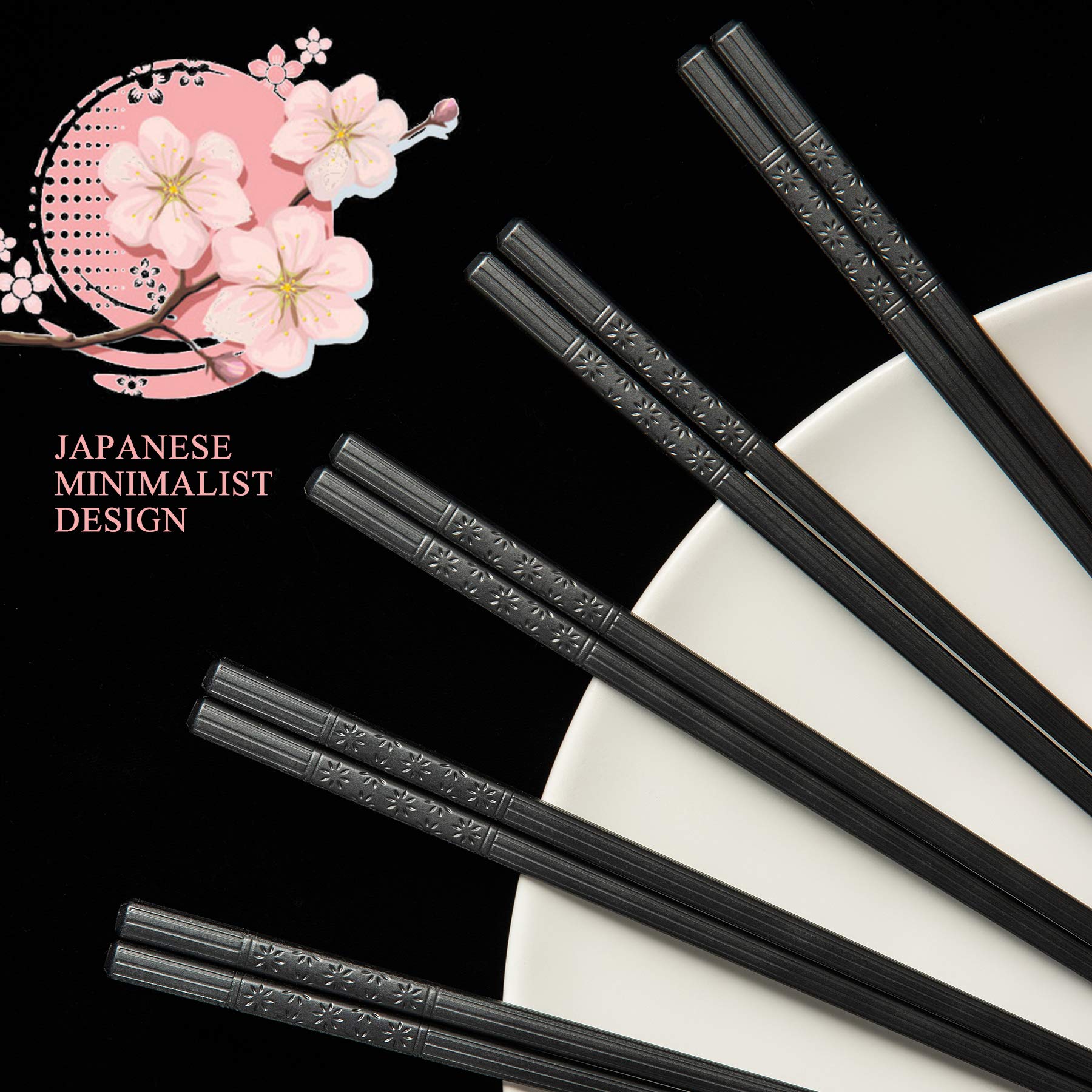 SUPJOYES 5 Paar Fiberglas-Essstäbchen, Wiederverwendbare japanische Essstäbchen, spülmaschinenfest, 24cm rutschfeste Stäbchen