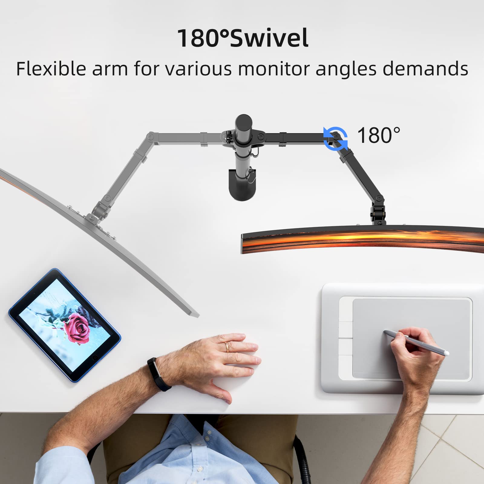 Starke universelle Kompatibilität, geeignet für 13 bis 27 Zoll LED-LCD-Monitore. Der Supteck-Anzeigearm hat VESA-Abmessungen von 75 x 75 mm bzw. 100 x 100 mm. Stellen Sie einfach sicher, dass der VESA-Abstand des Monitors innerhalb des unterstützten Bereichs liegt und das Gewicht des PC-Monitors 10 kg nicht überschreitet. Dann kann er verwendet werden. Es ist sehr einfach, die Neigung und den Winkel einzustellen. Der Suptek-Monitorarm unterstützt eine 360 ° -Monitor-Drehung, eine Auf- und Ab-Neigung von ± 90 °, eine Links- und Rechtsdrehung von ± 90 ° sowie eine Höhenverstellung entlang der Länge der 365-mm-Mittelsäule. Darüber hinaus können Sie mit dem Schraubenschlüssel die Höhe an jede Position anpassen, die Sie für geeignet halten. Der Arm ist sehr stark und der mitgelieferte Inbusschlüssel kann zur Stärkung des Gelenks verwendet werden. Der robuste Schreibtischclip hält den Monitor sehr gut. Für die Verbindung zwischen Monitor und Ständer werden mehrere Schrauben verwendet. Dies ist ein ausgezeichneter Stand mit einer soliden Struktur und einer guten Balance. Es kann problemlos ein Display von 13 bis 27 Zoll aufnehmen, was ausreicht. Unterstützt grosse Displays mit einem Gewicht von nicht mehr als 10 kg ohne zu schütteln. Sparen Sie Platz auf Ihrem Schreibtisch. Sie können den im Lieferumfang enthaltenen Inbusschlüssel verwenden, um Anpassungen vorzunehmen. Sie können die internen Kabel ausblenden. Gleichzeitig kann der Kabelclip die Verkabelung verbergen und die Kabelverwaltung vereinfachen. Dadurch sieht Ihr Schreibtisch ordentlich aus. Alle mit dem Monitor installierten Teile, einschliesslich Zubehör und Handbücher. Zwei Installationsmethoden: Installationskit für C-Klemme und Tülle. Befolgen Sie die Anweisungen, um es einfach einzurichten. Die Montage des Arms dauerte 10 Minuten, was ein sehr einfacher Vorgang ist. Gleichzeitig wird unser Kundenservice Ihnen immer innerhalb von 24 Stunden antworten und Ihnen die beste Lösung bieten.
