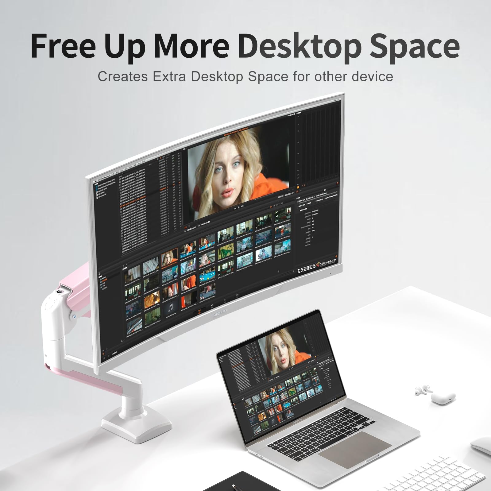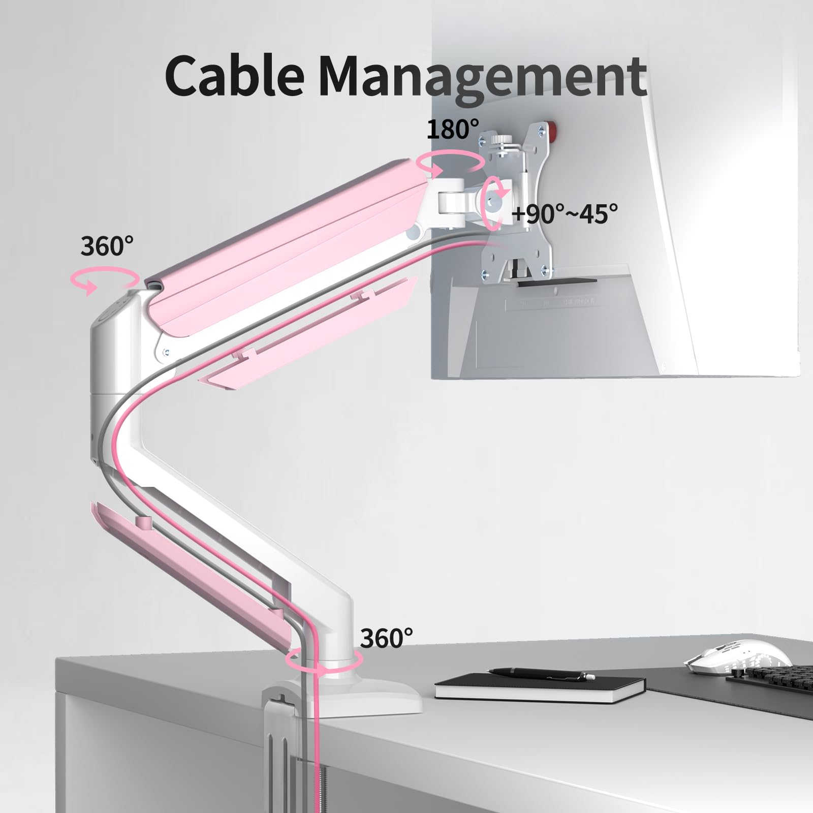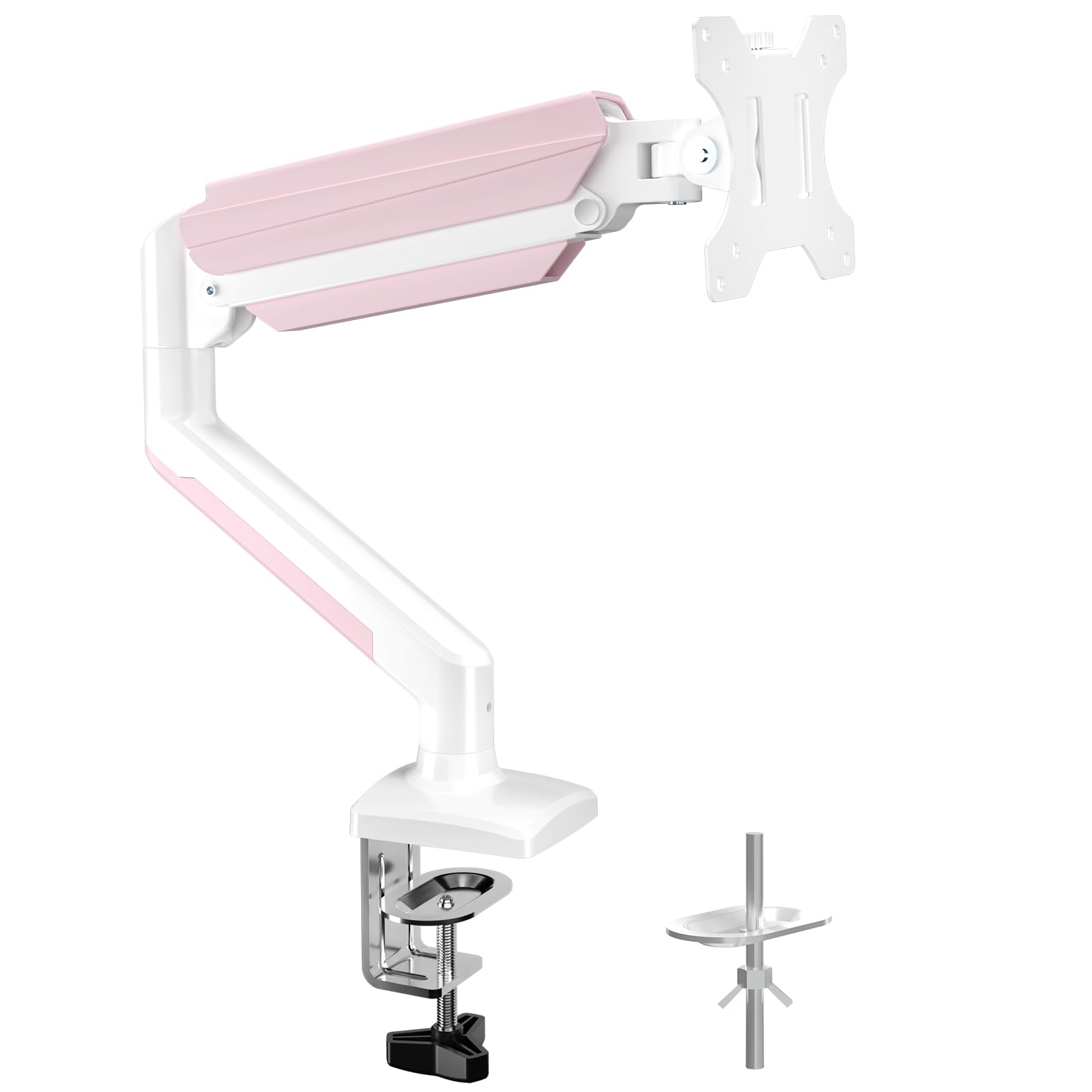 suptek Monitor Halterung für 13-32 Zoll LED LCD Bildschirm bis zu 9 kg, Monitor Arm mit Gasfeder, 360° Drehbar Höhenverstellbar Schwenkbar Neigbar, Monitorhalterung VESA 75x75/100x100 mm, Weiss-Rosa