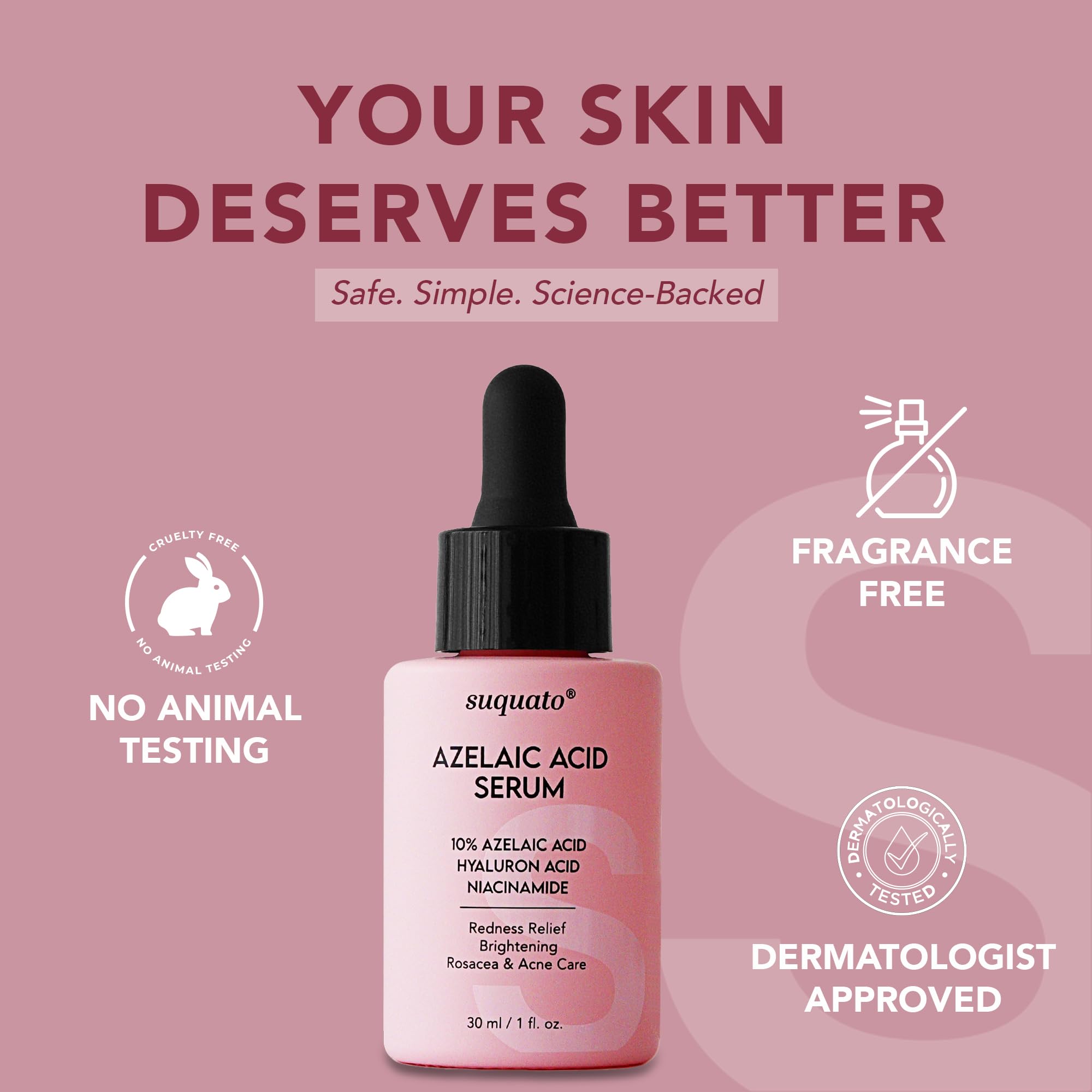 Suquato Azelainsaure Serum 10 % – Gesichtspflege mit Azelaic Acid, Niacinamid & Hyaluronsaure gegen Rosacea, Roetungen & Akne (30 ml)