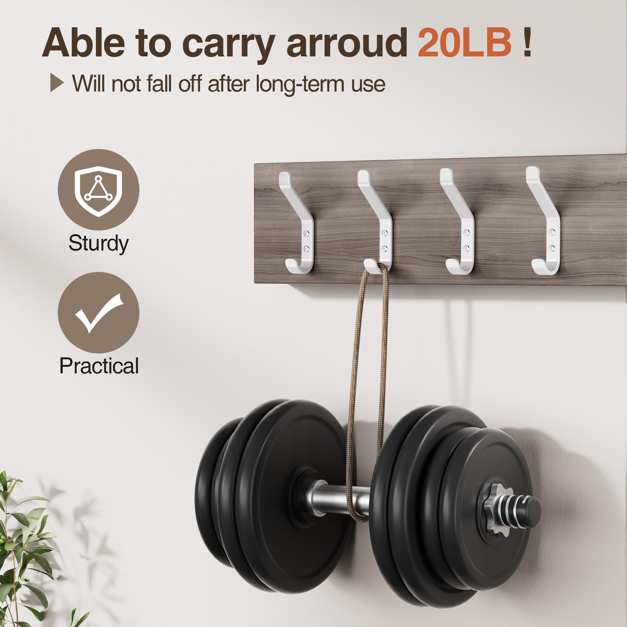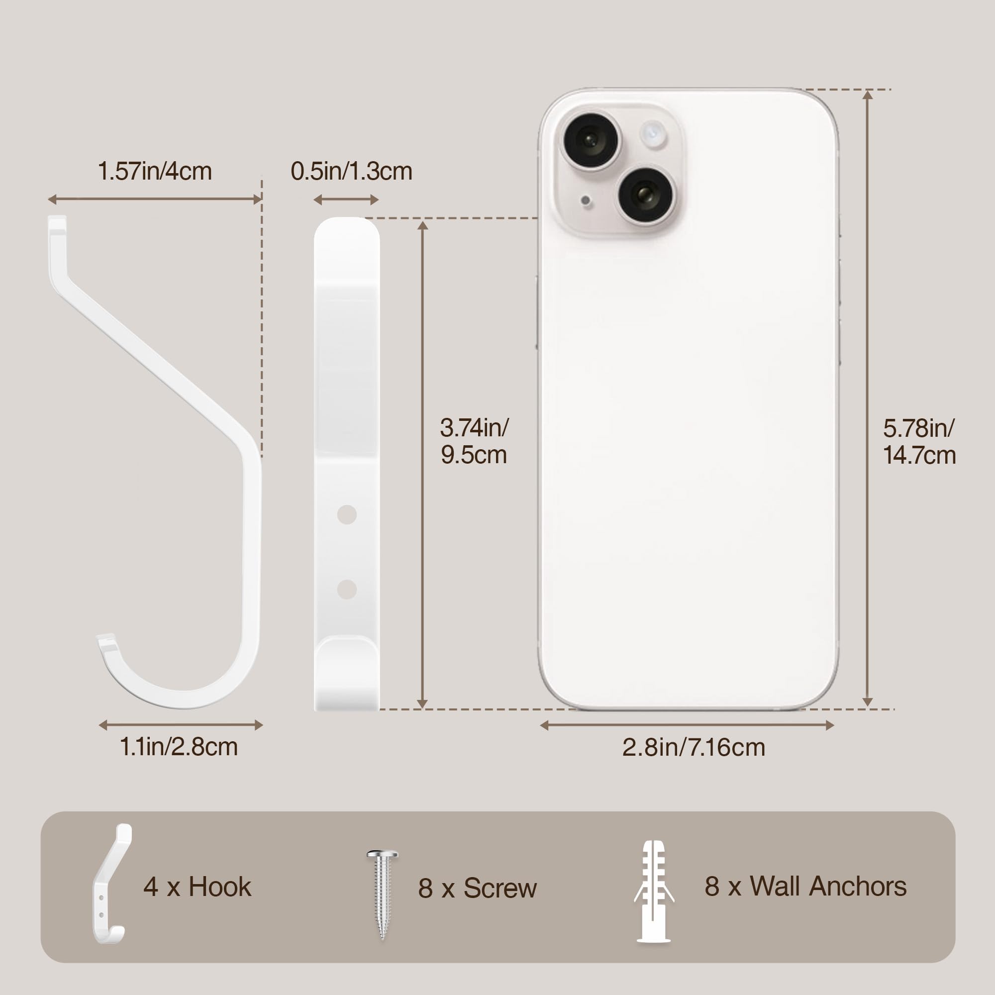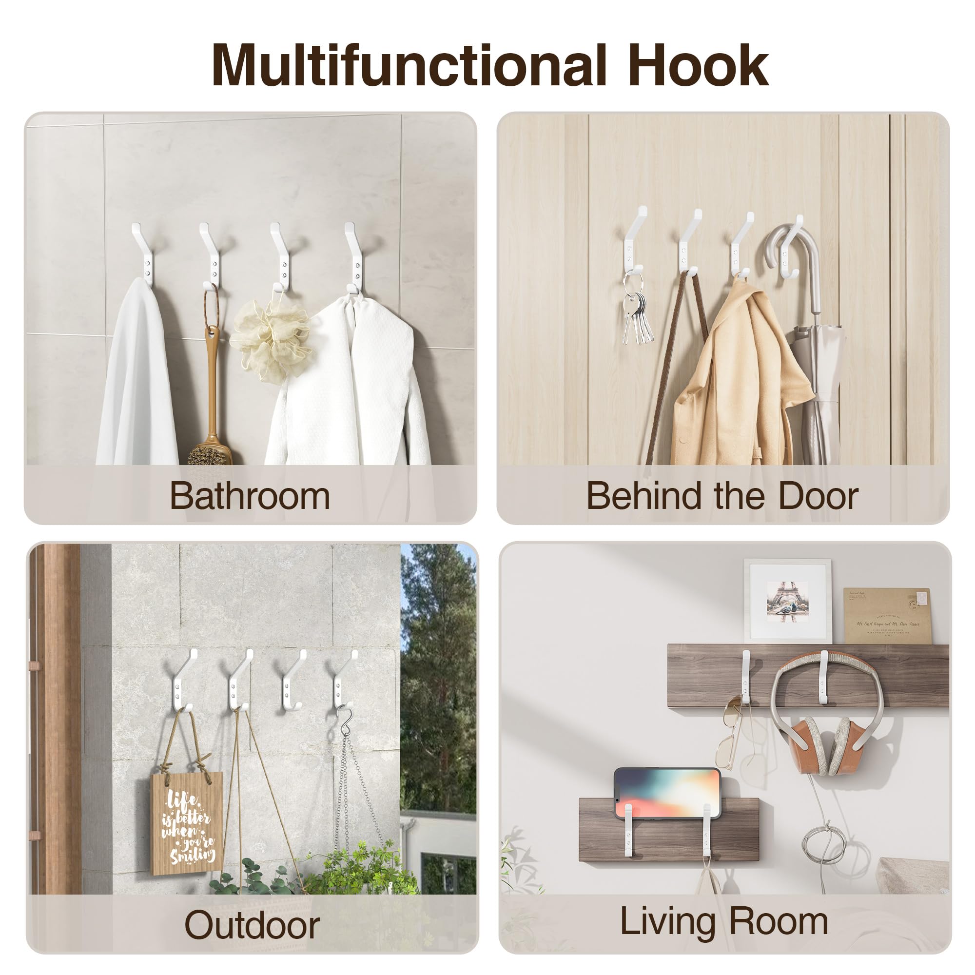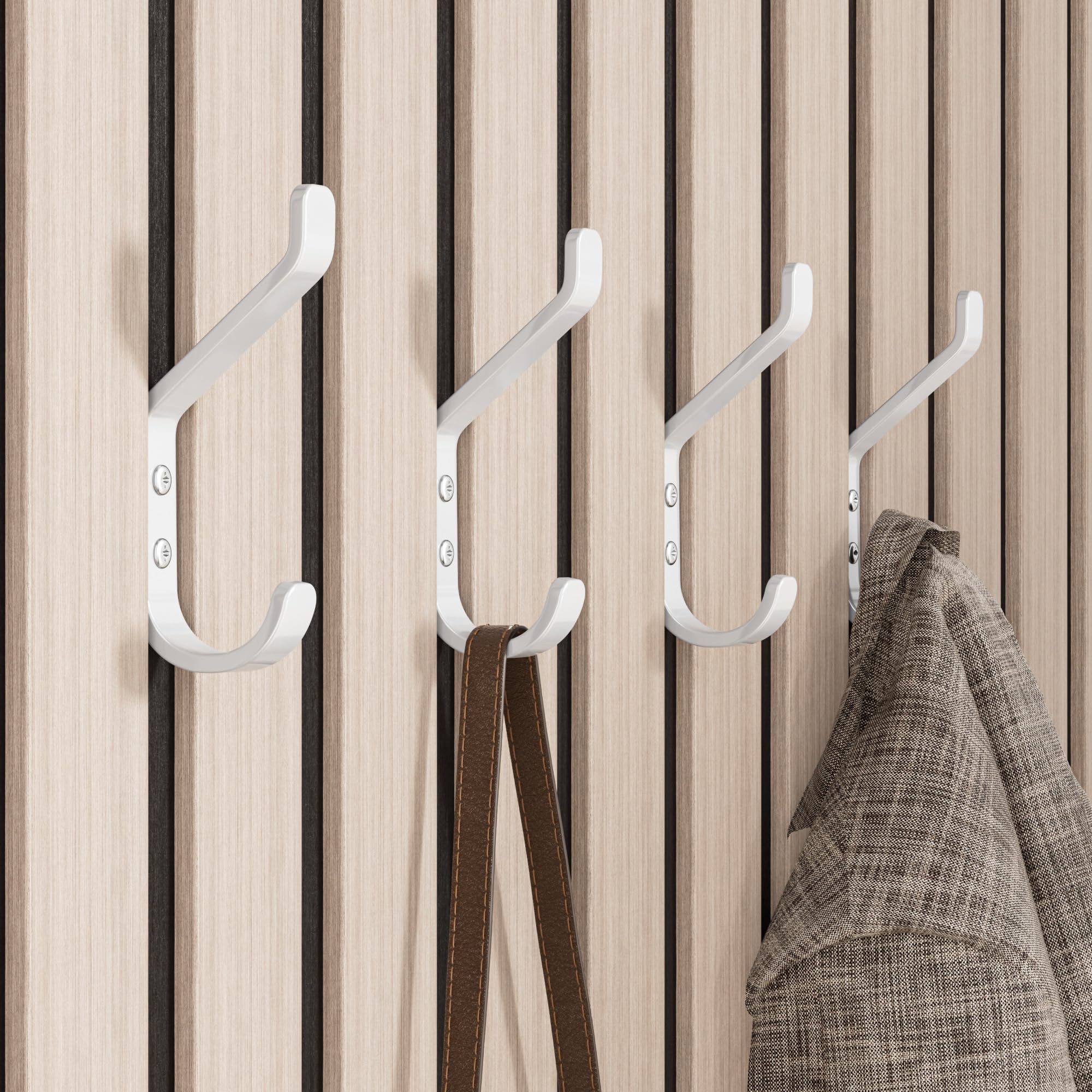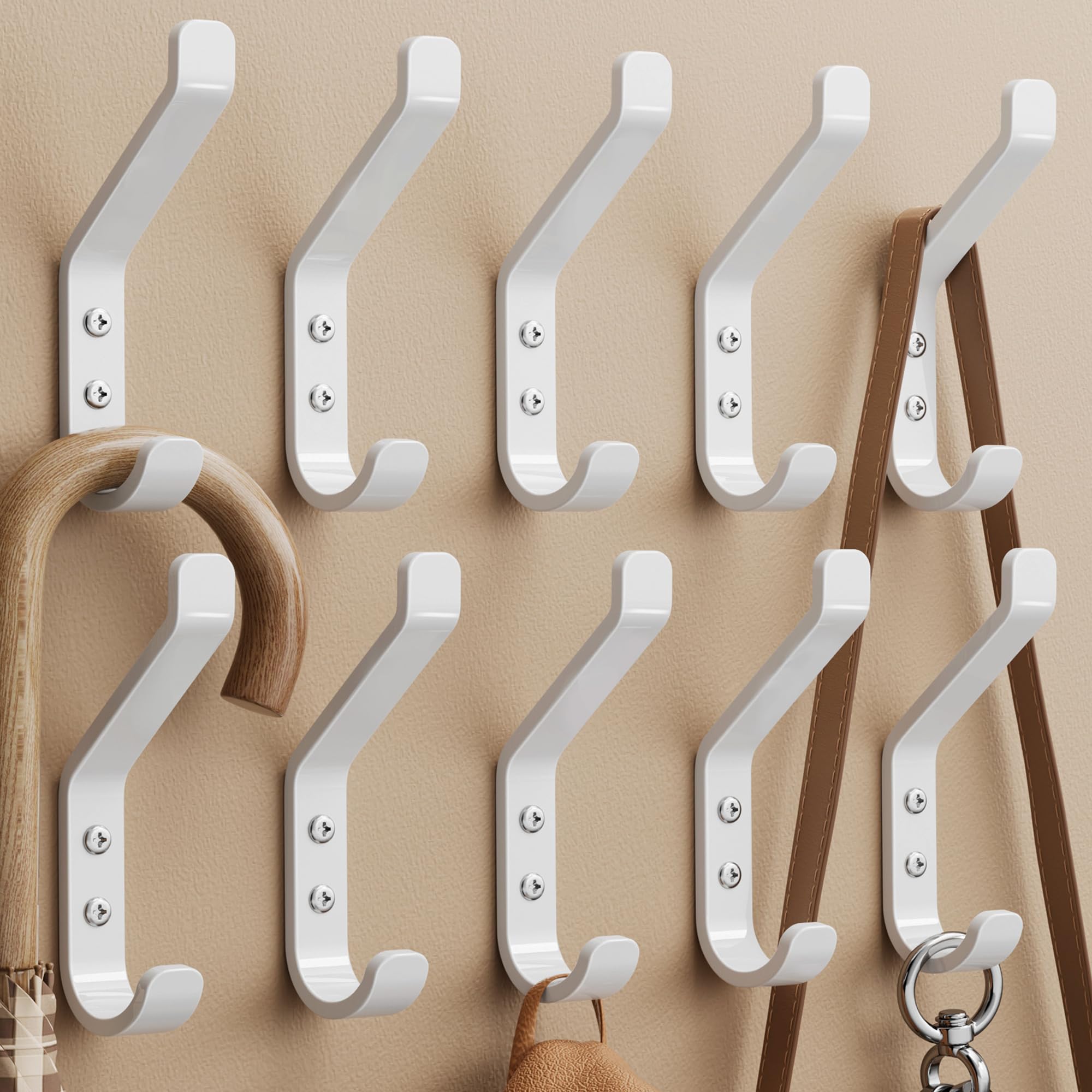 susswiff 10-Stück Garderobenhaken, Kleiderhaken zum Schrauben, Haken für Akustikpaneele, Schlafzimmer, Wohnzimmer, Badezimmer, Wandhaken für Garderobe, Jacken, Hut, Metall,Weiss, 10CM
