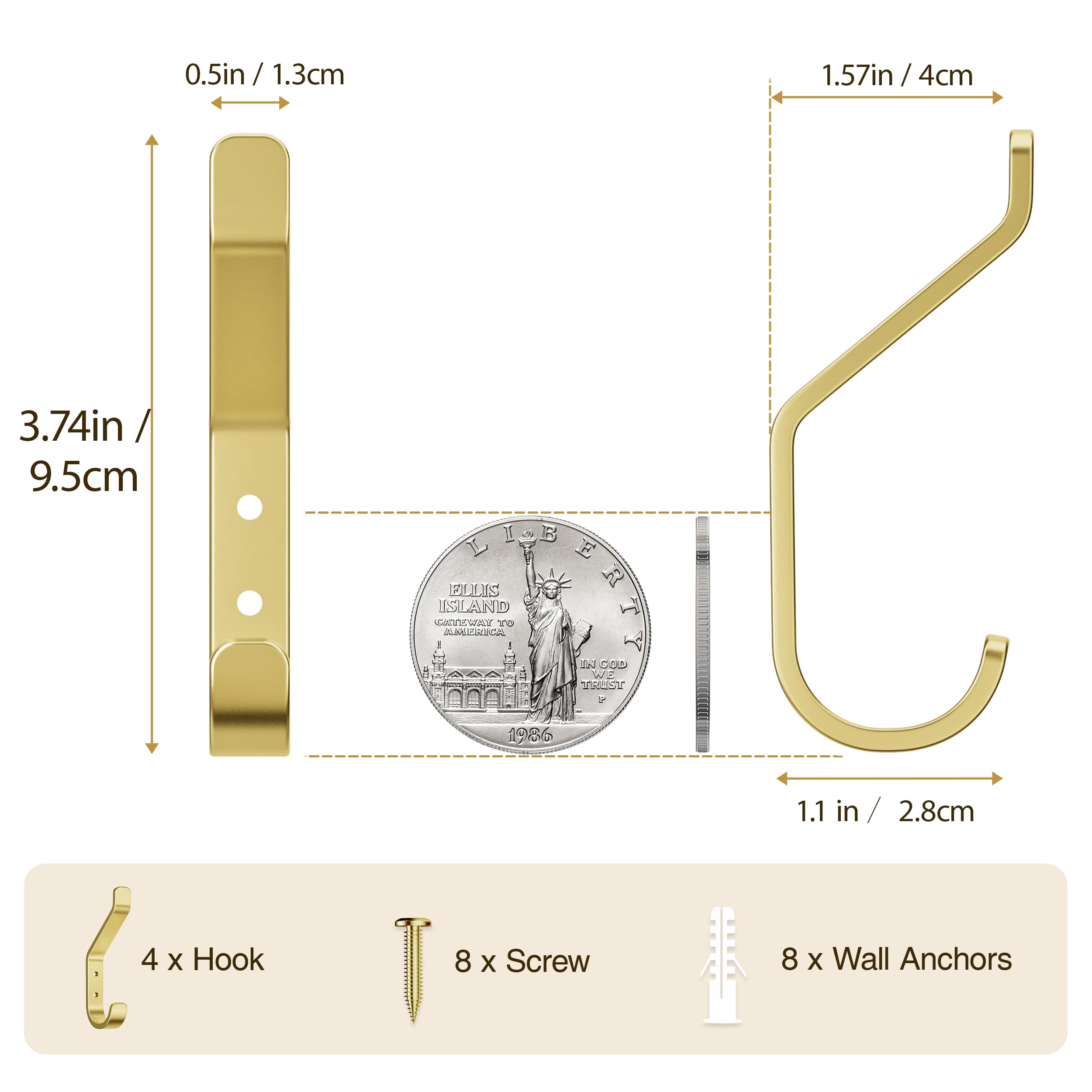 susswiff 10-Stück Garderobenhaken, Kleiderhaken zum Schrauben, Haken für Akustikpaneele, Schlafzimmer, Wohnzimmer, Badezimmer, Wandhaken für Garderobe, Jacken, Hut, Metall,10CM 10er-Pack Türhaken