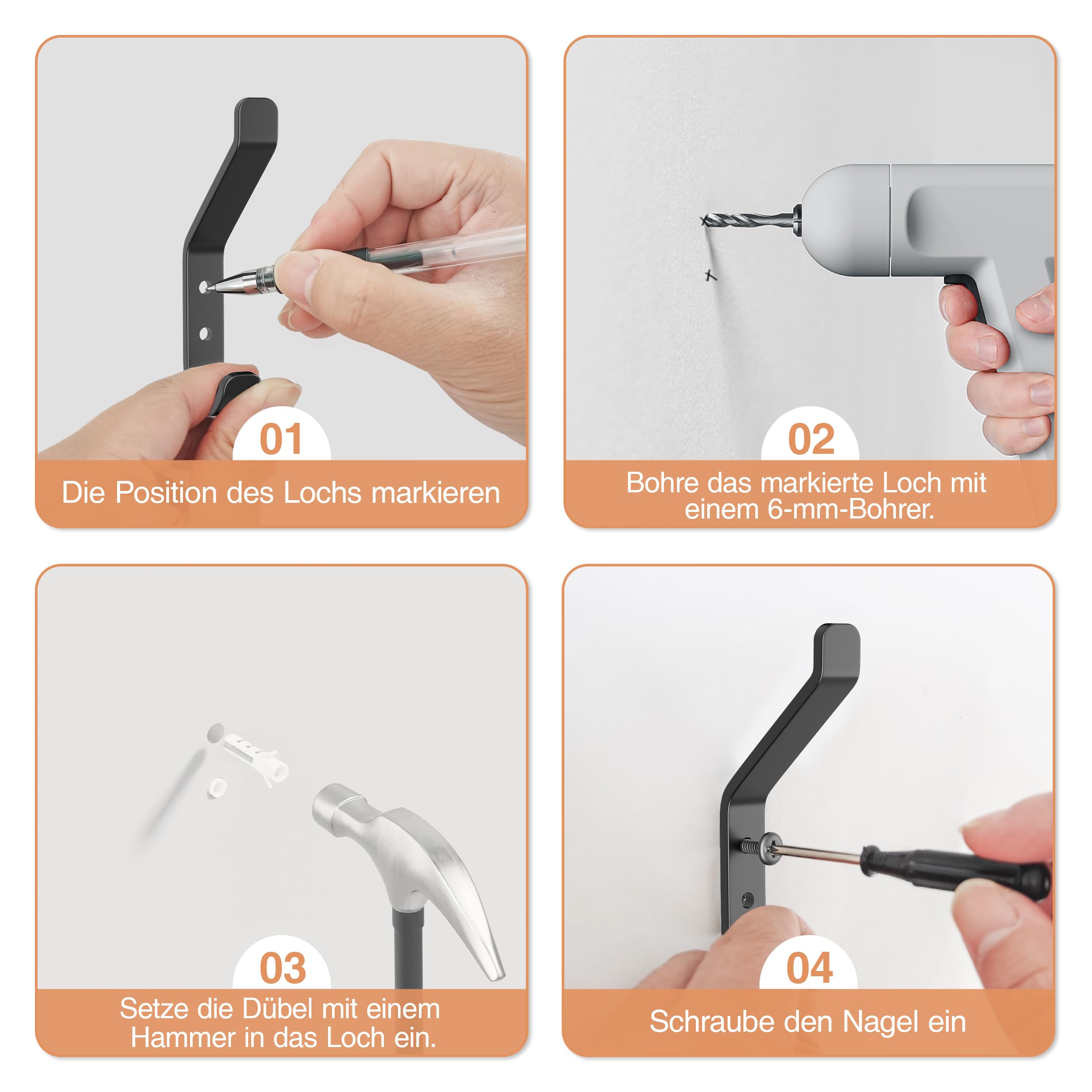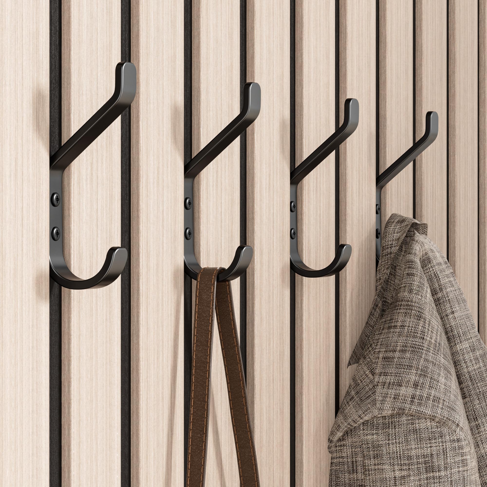 susswiff 10-Stück Garderobenhaken, Kleiderhaken zum Schrauben, Haken für Akustikpaneele, Schlafzimmer, Wohnzimmer, Badezimmer, Wandhaken für Garderobe, Jacken, Hut, Metall, Schwarz 10CM