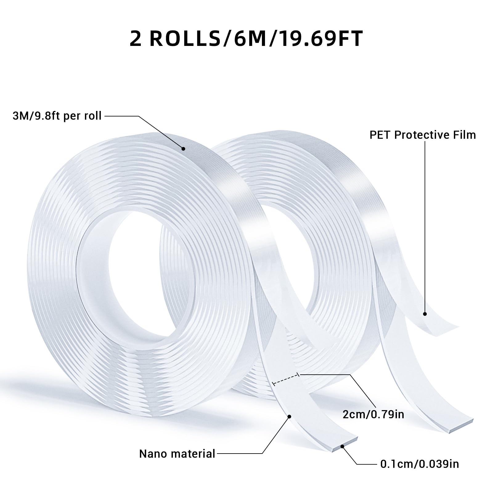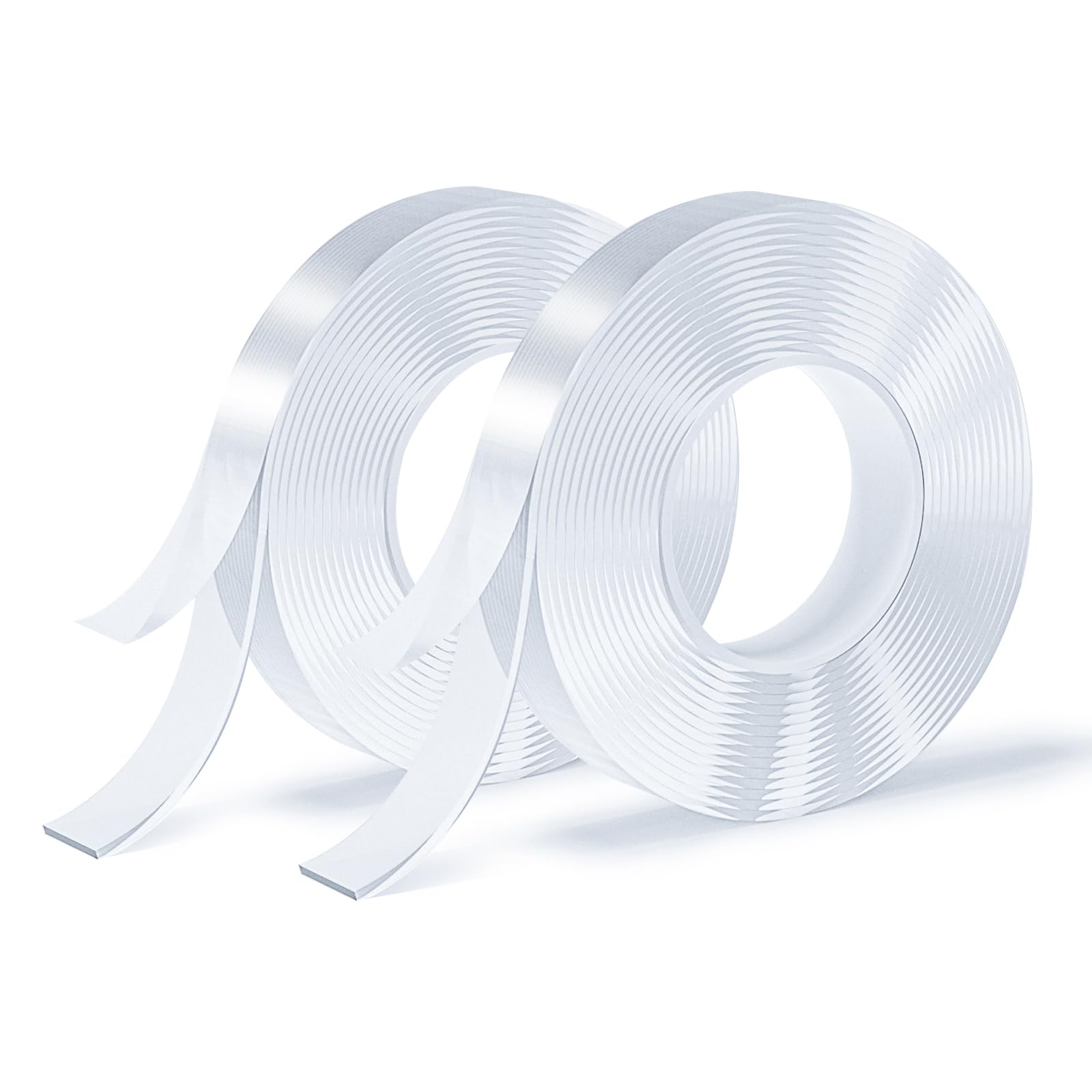 SUTOUG Doppelseitiges Klebeband, Nanoband, Transparentes Klebeband, Spurloses Klebeband, Abnehmbar, Waschbar, Wiederverwendbar, Geeignet für Teppiche, Fotowände, Küchenmöbel, 3m Pro Rolle, 2 Rollen