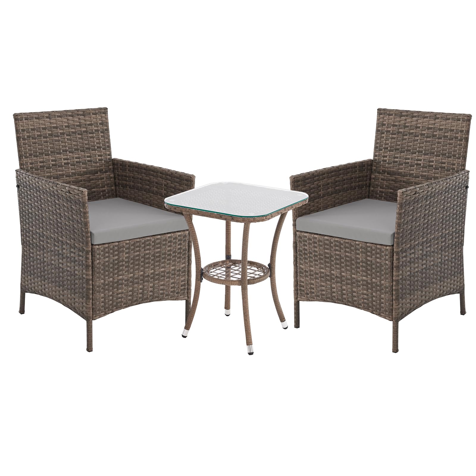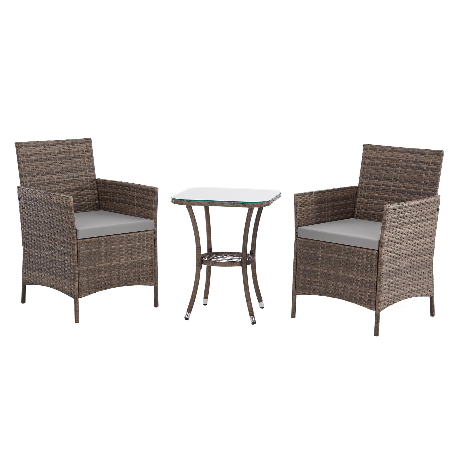 SVITA Brooklyn Bistro Gartenmöbelset 3-teilig Rattan Outdoor Gartenlounge Terrasse Balkon Garten Sitzgruppe mit 2 Sesseln und Tisch Braun