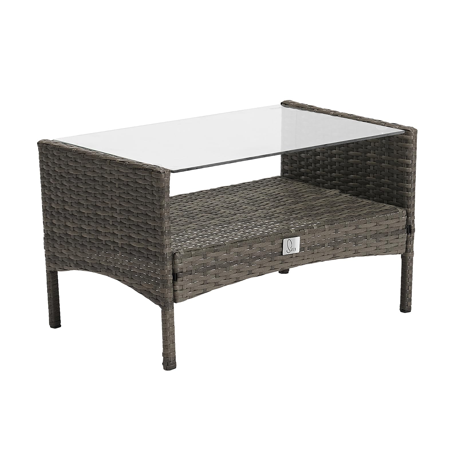 Dieses Möbelset ist ideal für die Nutzung im Freien. Besonders charmant ist der praktische Beistelltisch mit zwei Ablageflächen. Nutzen Sie die Glasplatte um Speisen und Getränke abzustellen, auf der unteren Ebene ist genügend Aufbewahrungsmöglichkeit für Zeitschriften, Bücher & Co.