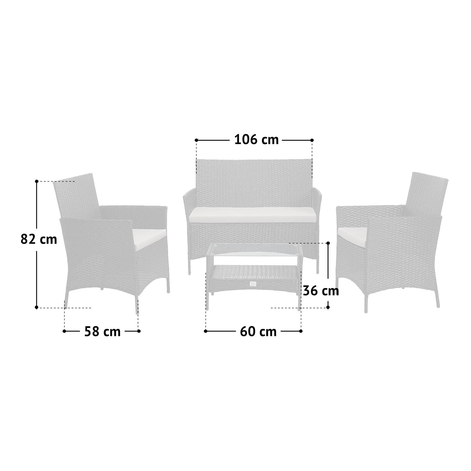 Die Kunststofffaser der Möbel ist hochwertig verarbeitet, schmutz- als auch wasserabweisend. Handlich durch ihr geringes Gewicht, lässt sich die Garnitur leicht umstellen und transportieren.