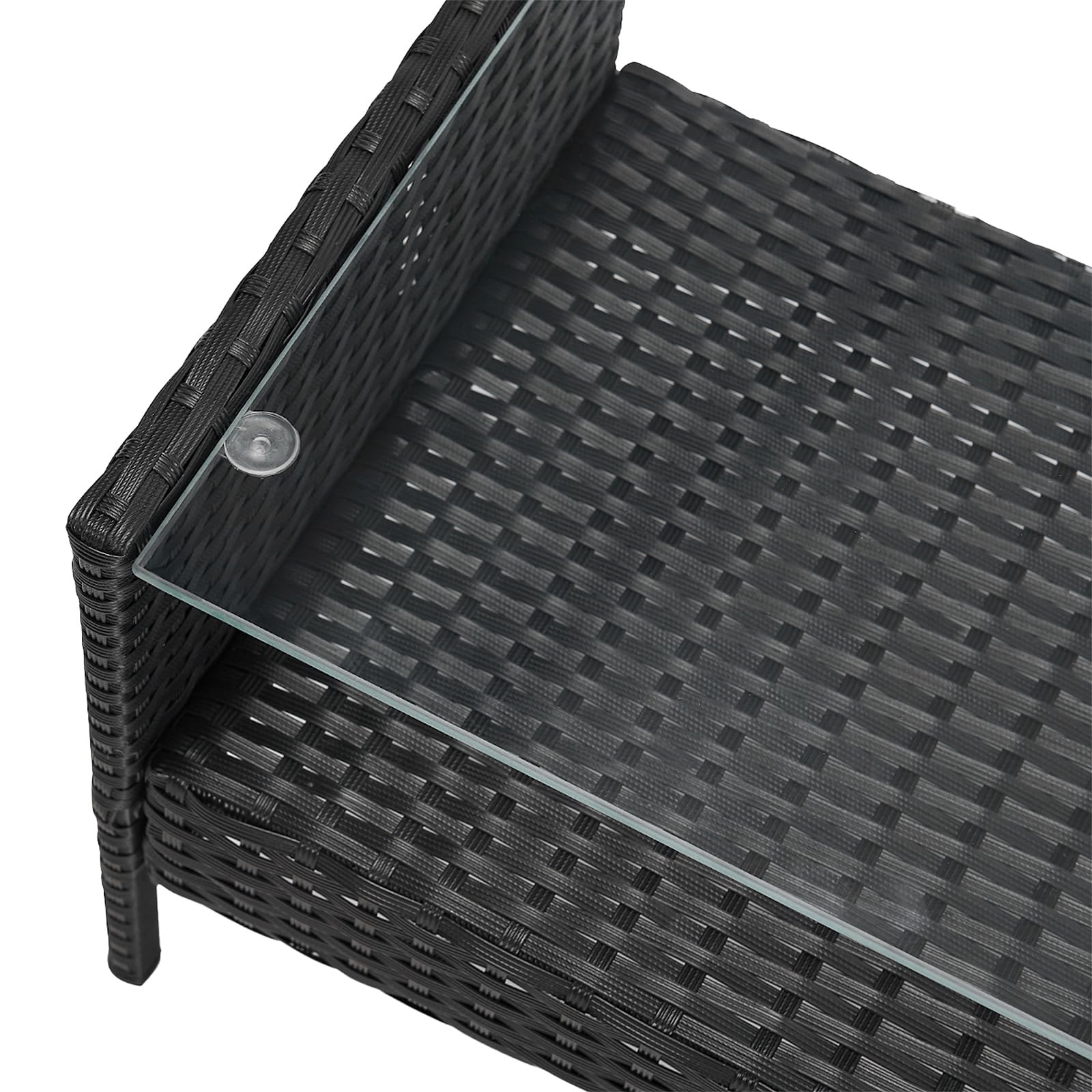 Dieses Möbelset ist ideal für die Nutzung im Freien. Besonders charmant ist der praktische Beistelltisch mit zwei Ablageflächen. Nutzen Sie die Glasplatte um Speisen und Getränke abzustellen, auf der unteren Ebene ist genügend Aufbewahrungsmöglichkeit für Zeitschriften, Bücher & Co.