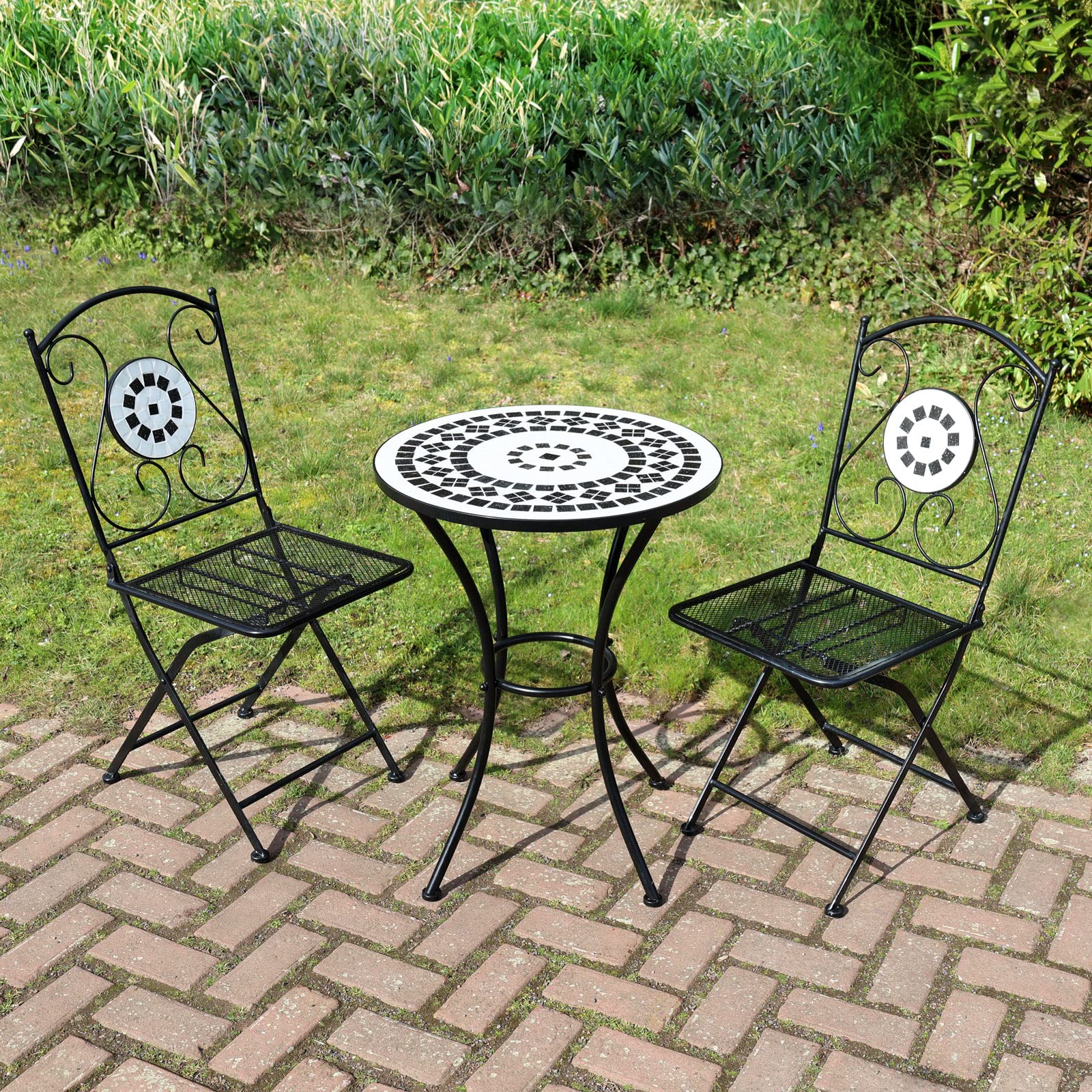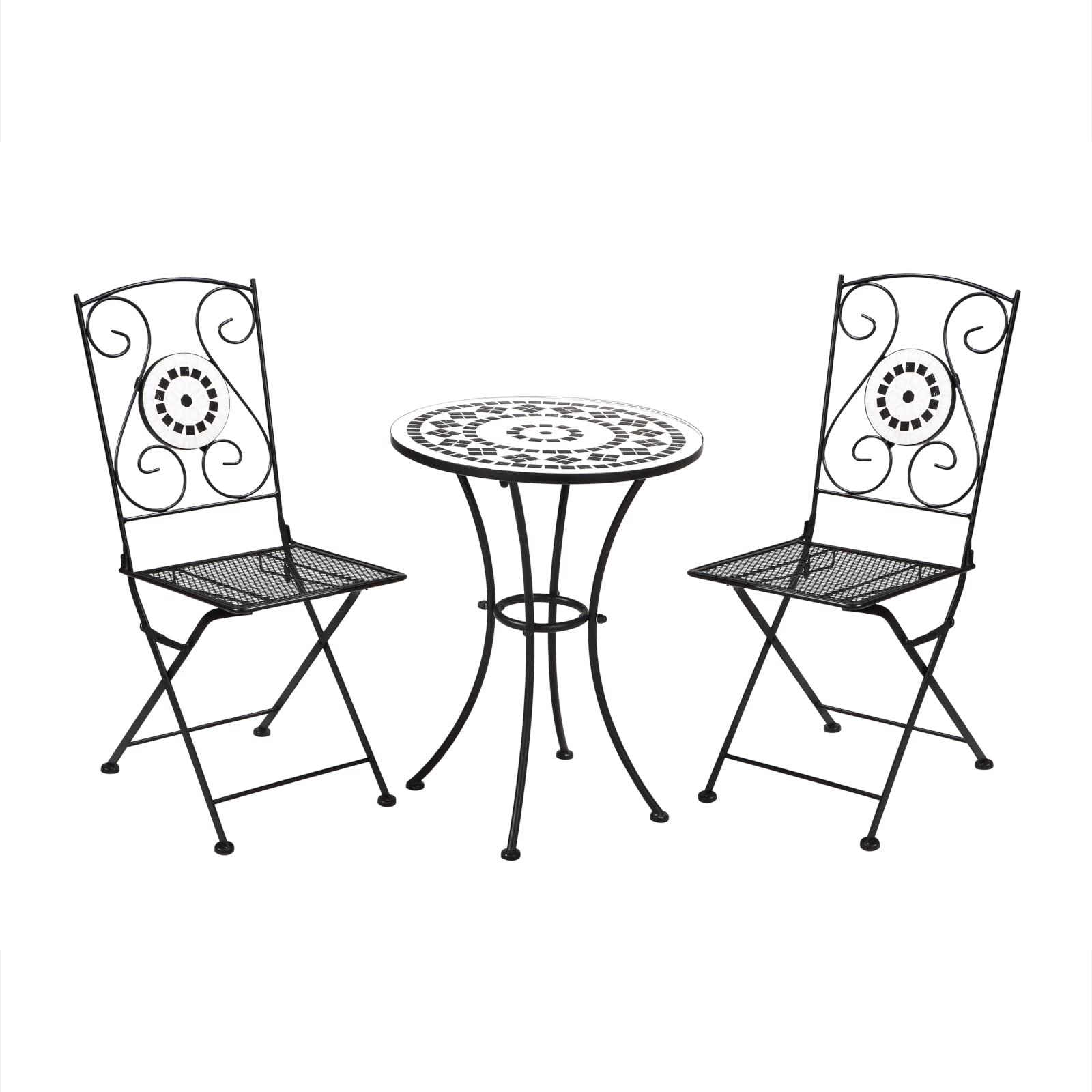SVITA Paris Gartenmöbel Set - Elegantes Bistro Set mit Mosaik klappbar schwarz Balkon Möbel Balkonset 2 Stühle 1 Tisch Ideal für 2 Personen Bistromöbel für Balkon