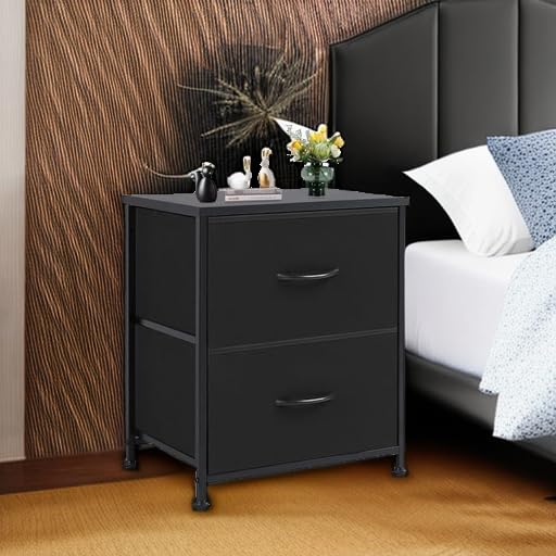 Dieser Schlafzimmer-Kommode ist in 3 Stilen erhältlich: einer für den Nachttisch / Nachttisch-Set von 2 / hoher einzelner Nachttisch. 4 Farben: Schwarz, Braun, Grau, Weiss. Kurze Grösse: 17,7"D x 11,8"W x 20"H. Schubladengrösse: 15,7" L * 11" W * 8,2". Hoher Nachttisch: 18,9"D x 11,8"W x 25"H. Schubladengrösse: 17,1" L * 11" W * 9,6". Anwendungsszenario: Die Kommode mit 2 Stoffschubladen ist leicht und kann in einem Schlafzimmer oder Wohnzimmer, Hausbar, Schlafzimmer, Wohnzimmer, Home-Office, Kinderzimmer, Ankleideraum für einen Schrank angewendet werden.