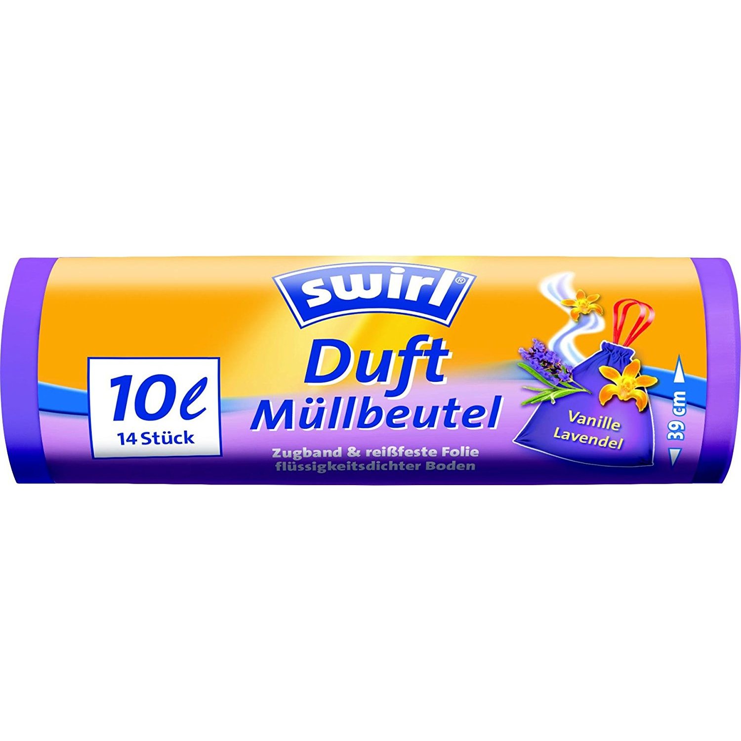 Swirl Duft-Müllbeutel Vanille-Lavendel mit Zugband, 10 Liter, 1 Rolle mit 14 Beuteln