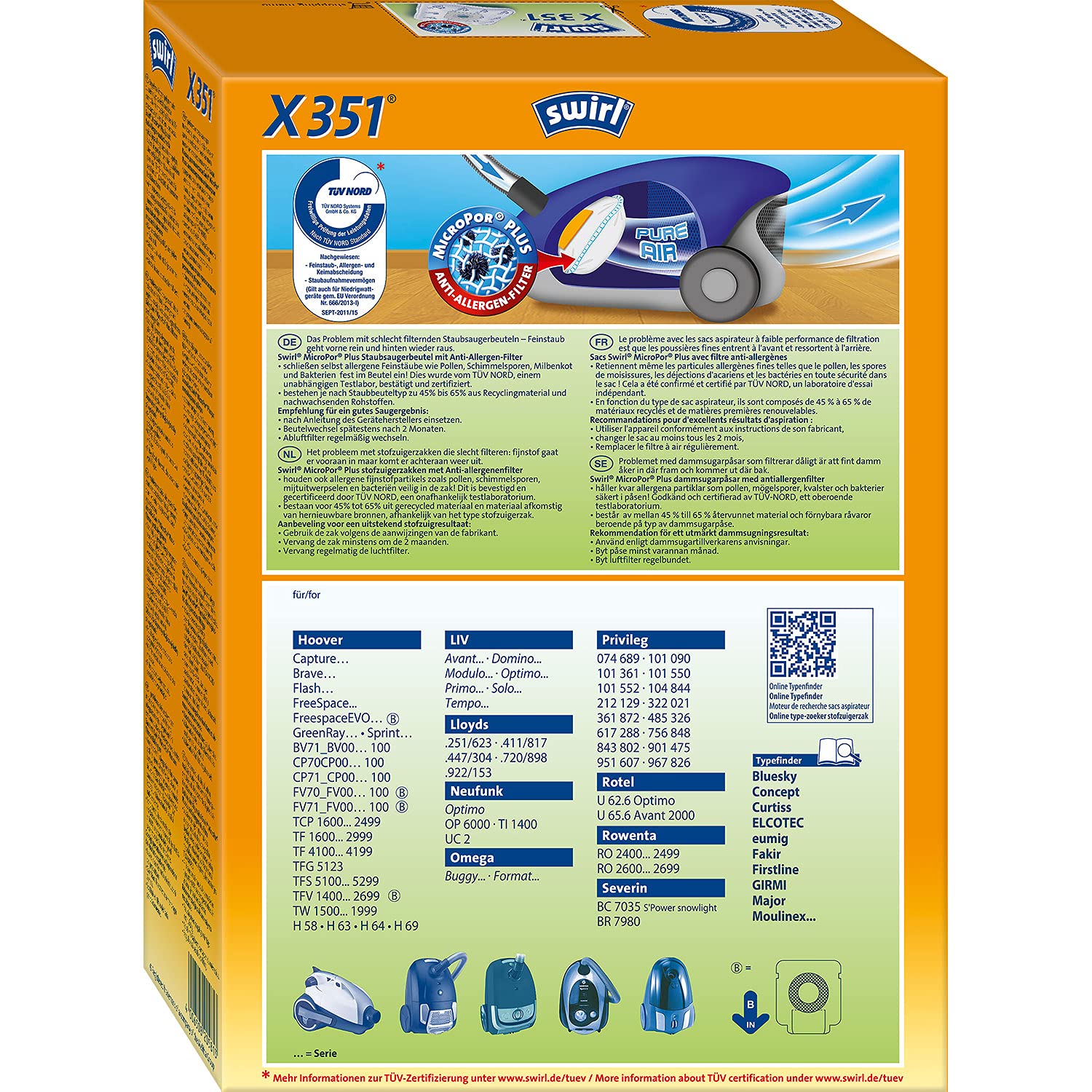 Swirl® X 351® EcoPor® Staubsaugerbeutel für Hoover, Rowenta, Severin, 4 Beutel (Packung mit 2)
