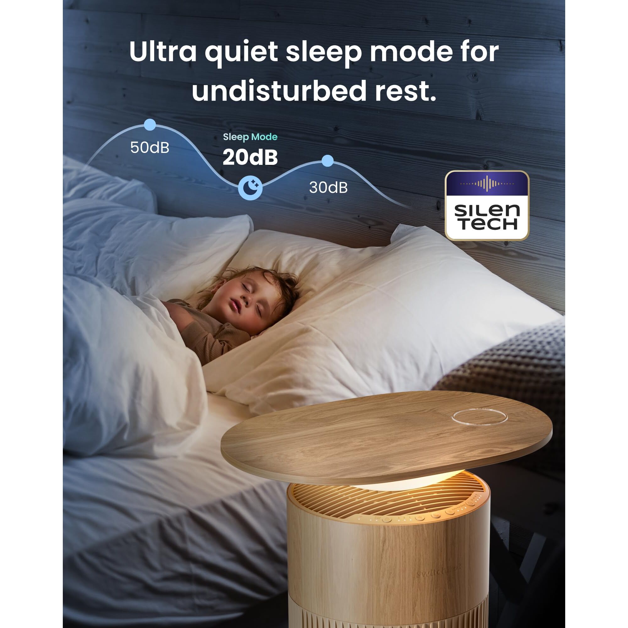 SwitchBot Luftreiniger mit App-Steuerung und Nachtlicht, CADR 400m³/h bis zu 83㎡ Zimmer, HEPA-Filter entfernt 99,97% Schimmel Staub Pollen