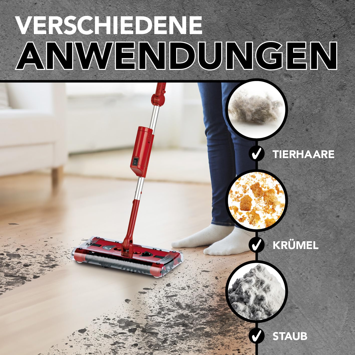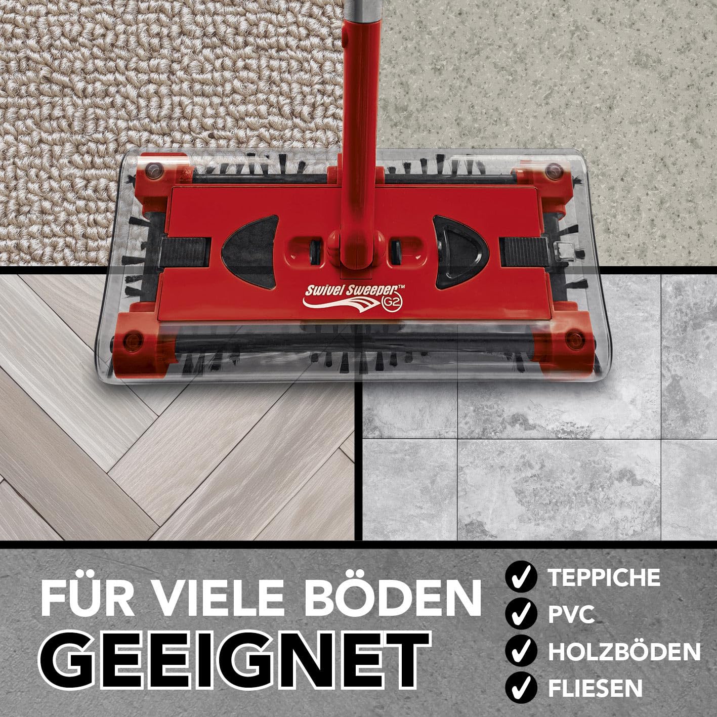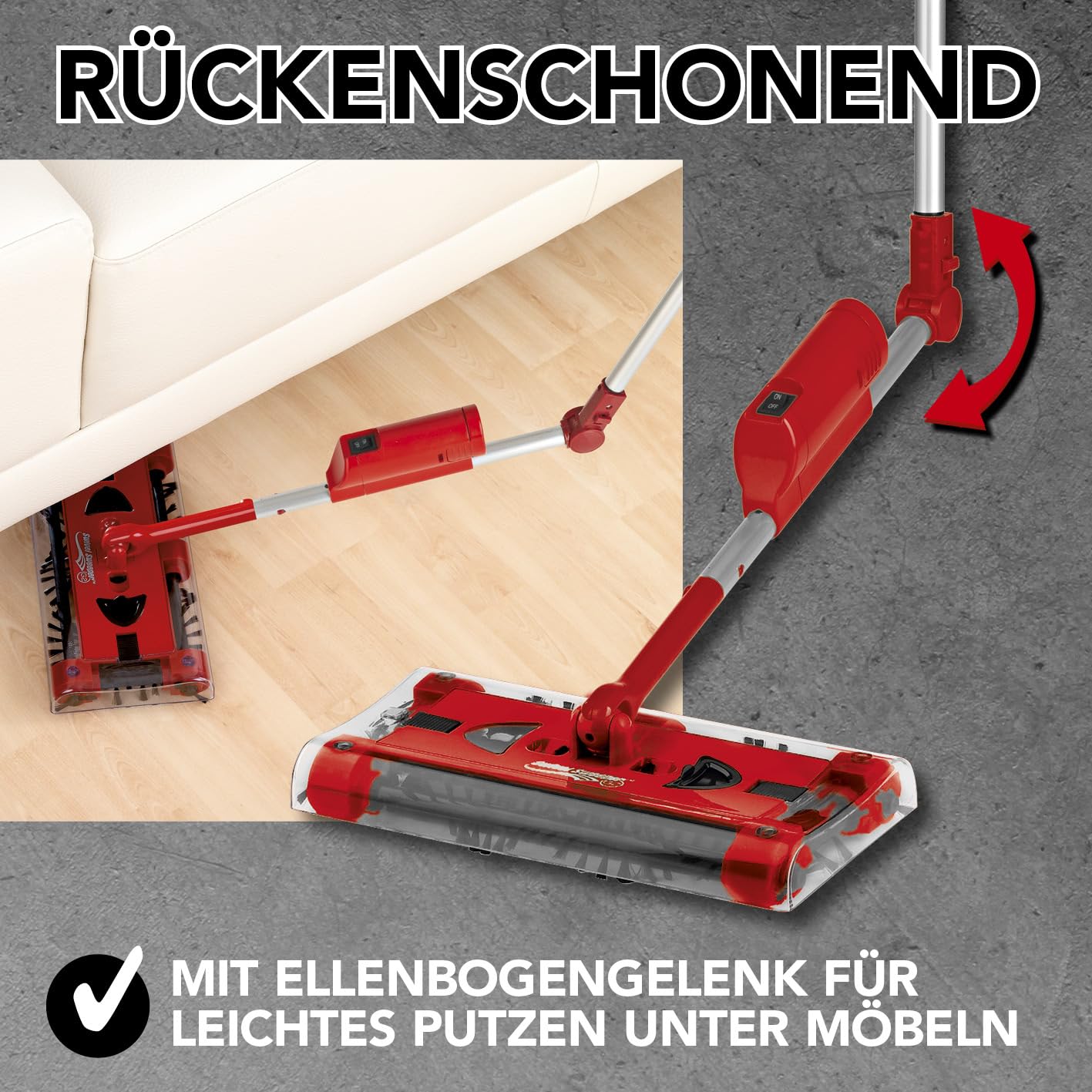 Swivel Sweeper Akku-Besen - einfache Krümelaufnahme - Kabellos, beutellos & wiederaufladbar - Bodenfeger mit rückenschonendem Knickgelenk & 360° Rotation - Maximale Flexibilität - Mühelose Reinigung