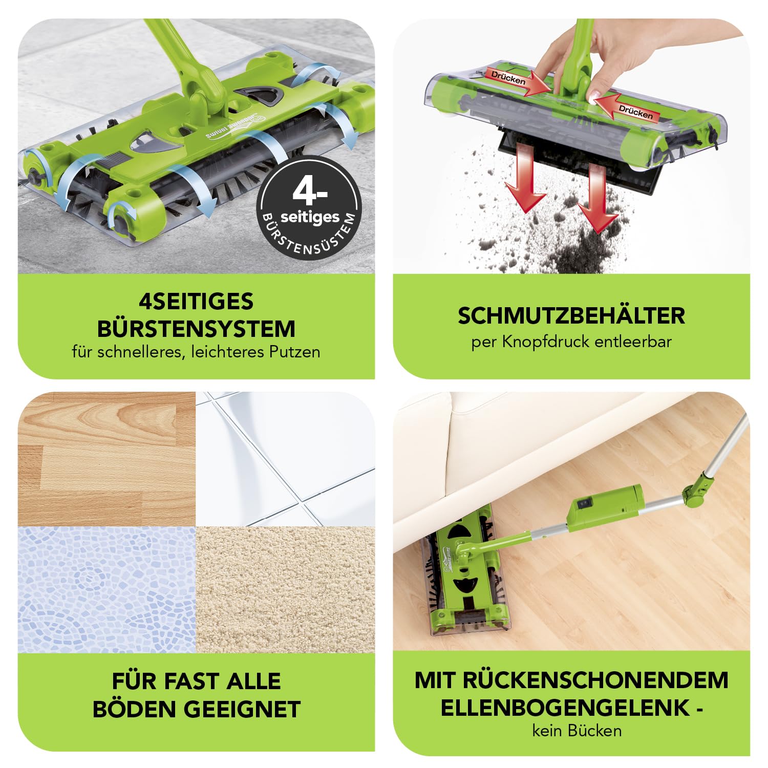 Swivel Sweeper Akku-Besen + Zusatzakku - einfache Krümelaufnahme - Kabellos, beutellos & wiederaufladbar - Bodenfeger mit rückenschonendem Knickgelenk & 360° Rotation - Maximale Flexibilität