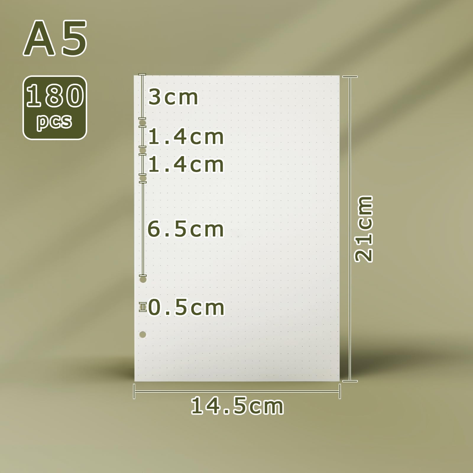 SWTYExt 3 Packungen A5 Nachfüllpapier Gepunktet, 180 Blätter 6 Löcher A5 Papier Nachfüllbare Refill Paper Ringbucheinlagen für A5 Notizbuch Skizze Tagbuch Malerei Bullet Journal