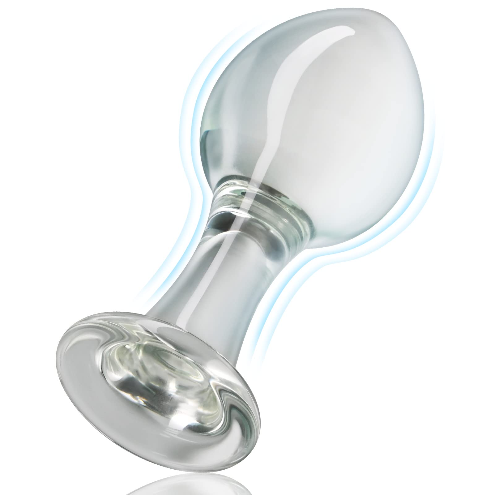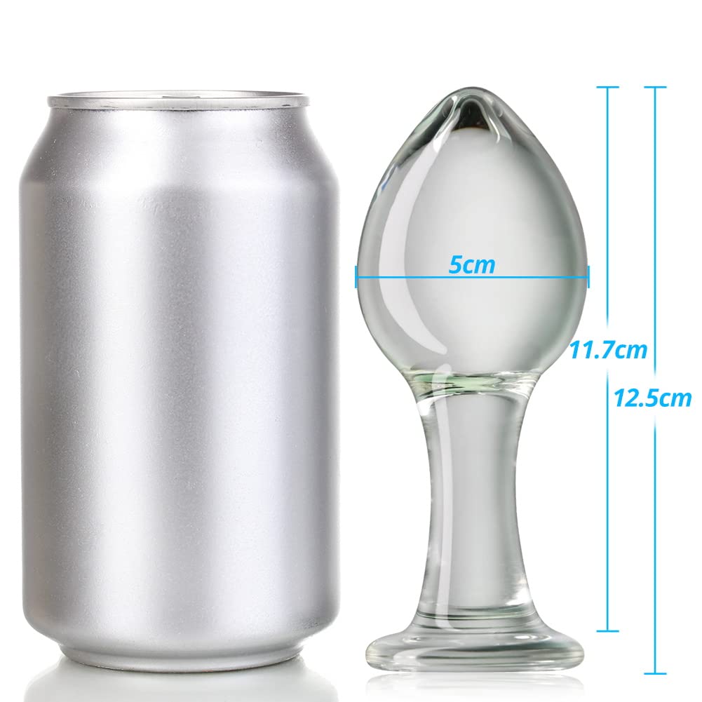 SXOVO Glas Dildo Buttplug Trainer, G-Punkt Stimulator Analplug mit Stoss Kegel Glas Kristall Analdildo Butt Plug Analsexspielzeug für Frauen Männer Masturbation (L)